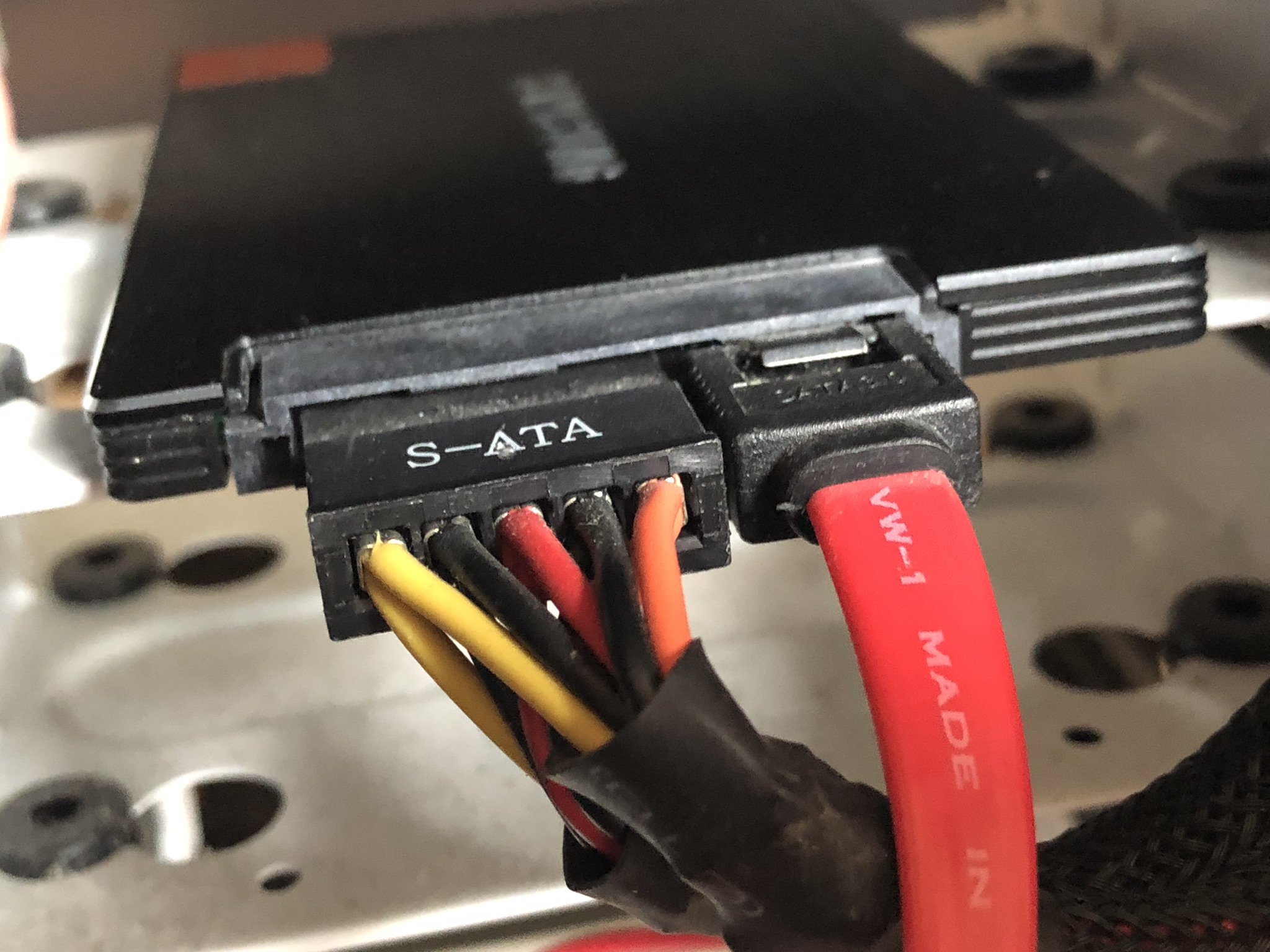 Ich habe mal Fotos angehängt, auf denen man die verwendeten SATA Kabel sieht.