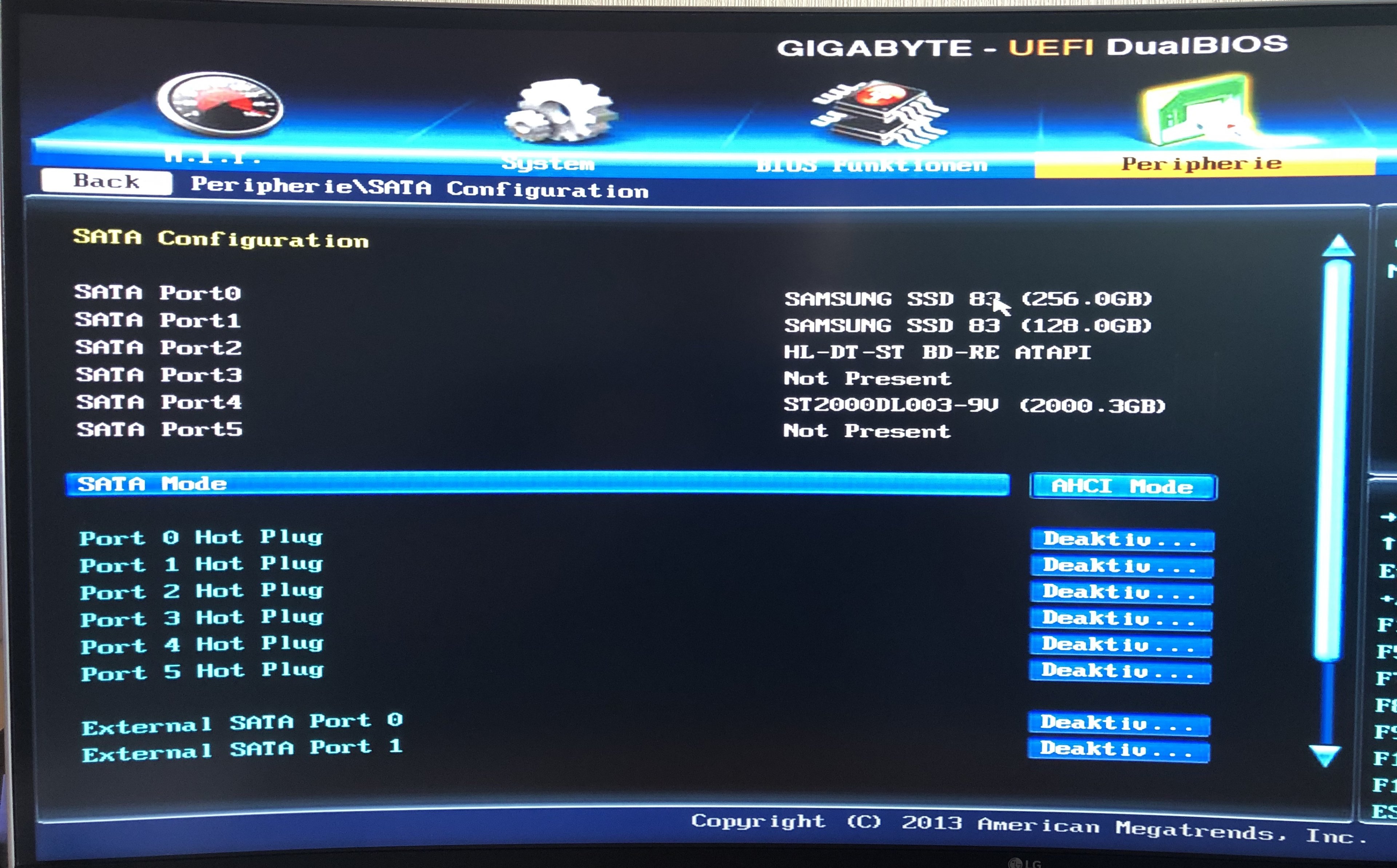 Im BIOS Foto sind "Hot Plug" für die jeweiligen Ports aktivierbar.