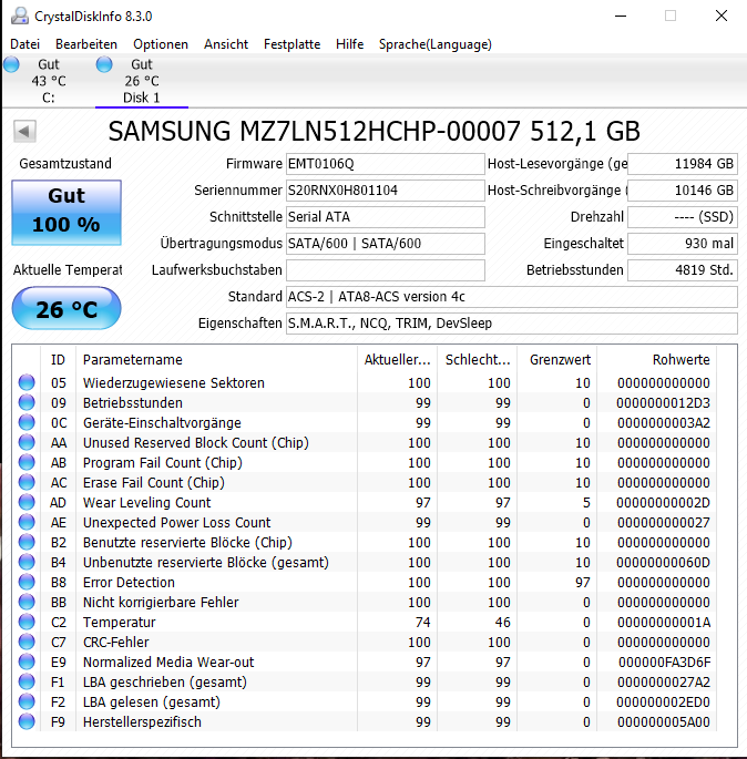 vor gut einem Jahr habe ich mir eine Samsung 860 EVO gekauft. Ich wollte wissen, ob ihr mit dieser Festplatte bezüglich der Lebensdauer eure Erfahrungen gemacht habt ?