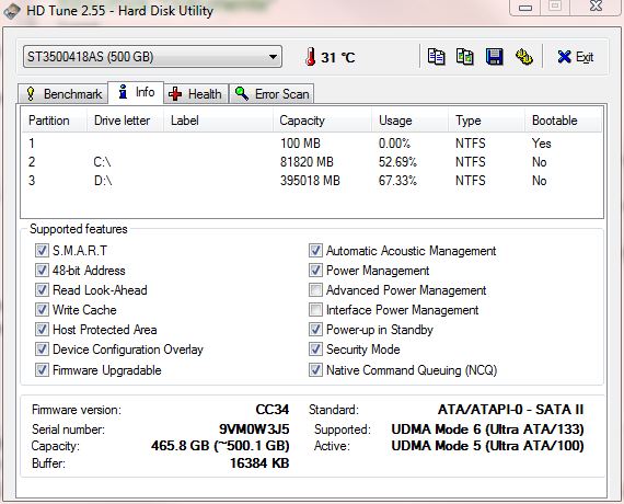 HD Tune: ST3500418AS Information