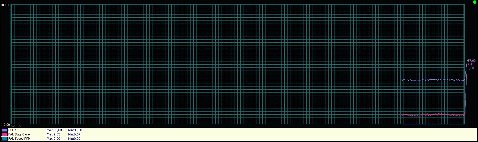 Habe nochmal 3DMark anlaufen lassen und man sieht dass die Temp. steigt aber der Lüfter angeblich nicht anläuft- also würde ich sagen dass dieser Wert sicher nicht stimmt und er bei mir wohl im 2D als auch 3D Betrieb voll dreht :-(