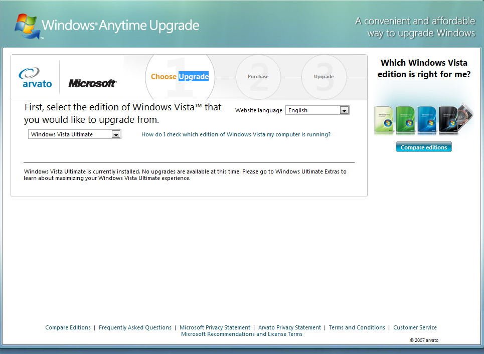 Nach Auswahl "Vista Ultimate" ist Schluss und man kann nichts mehr anklicken.