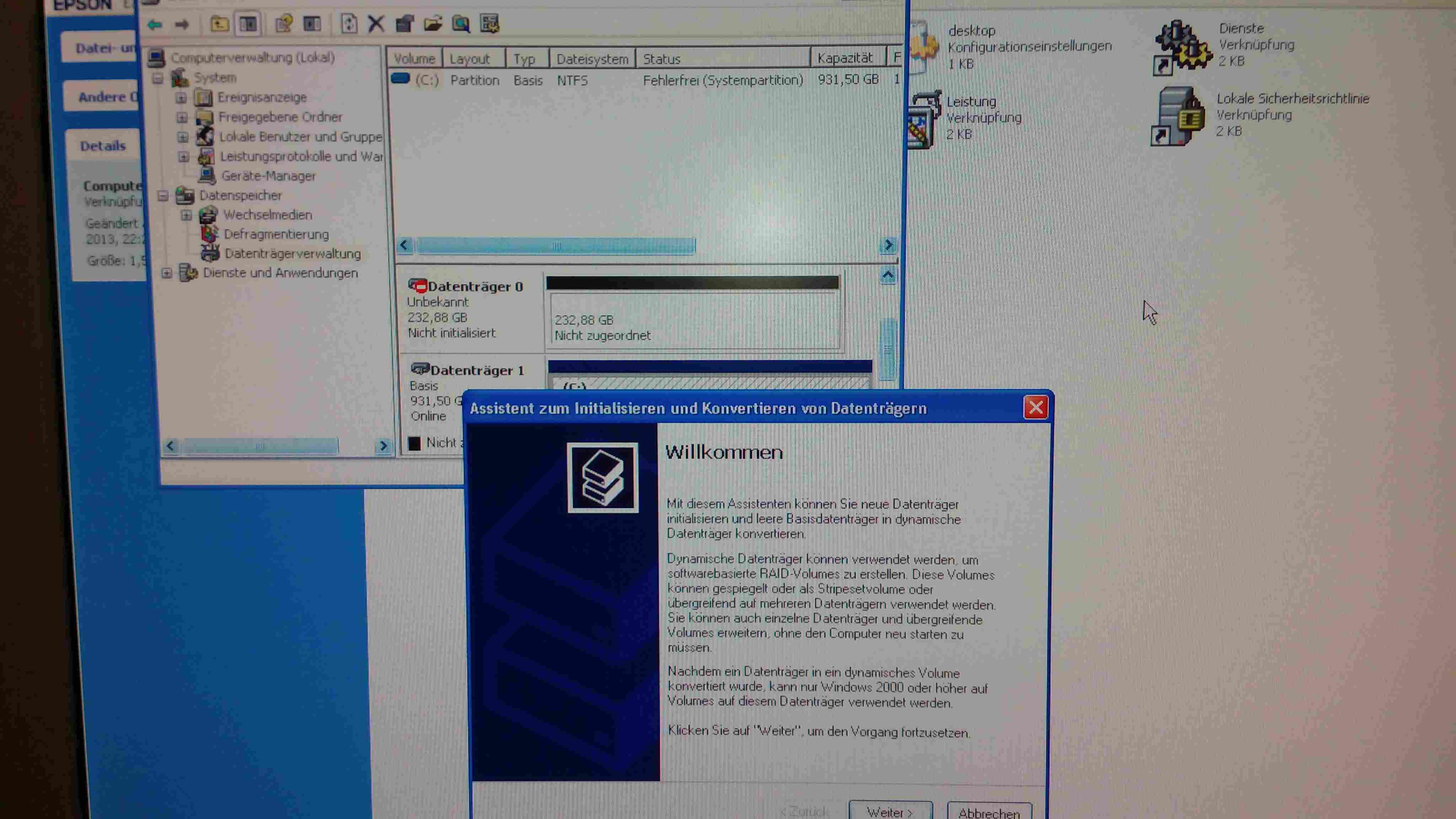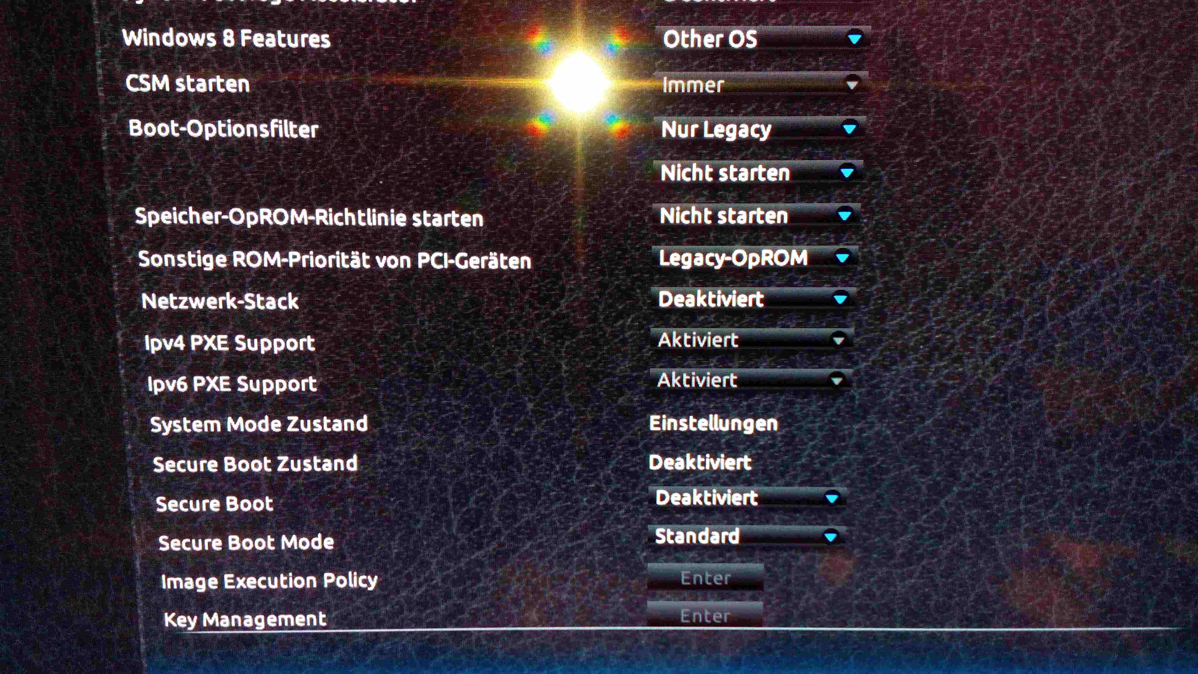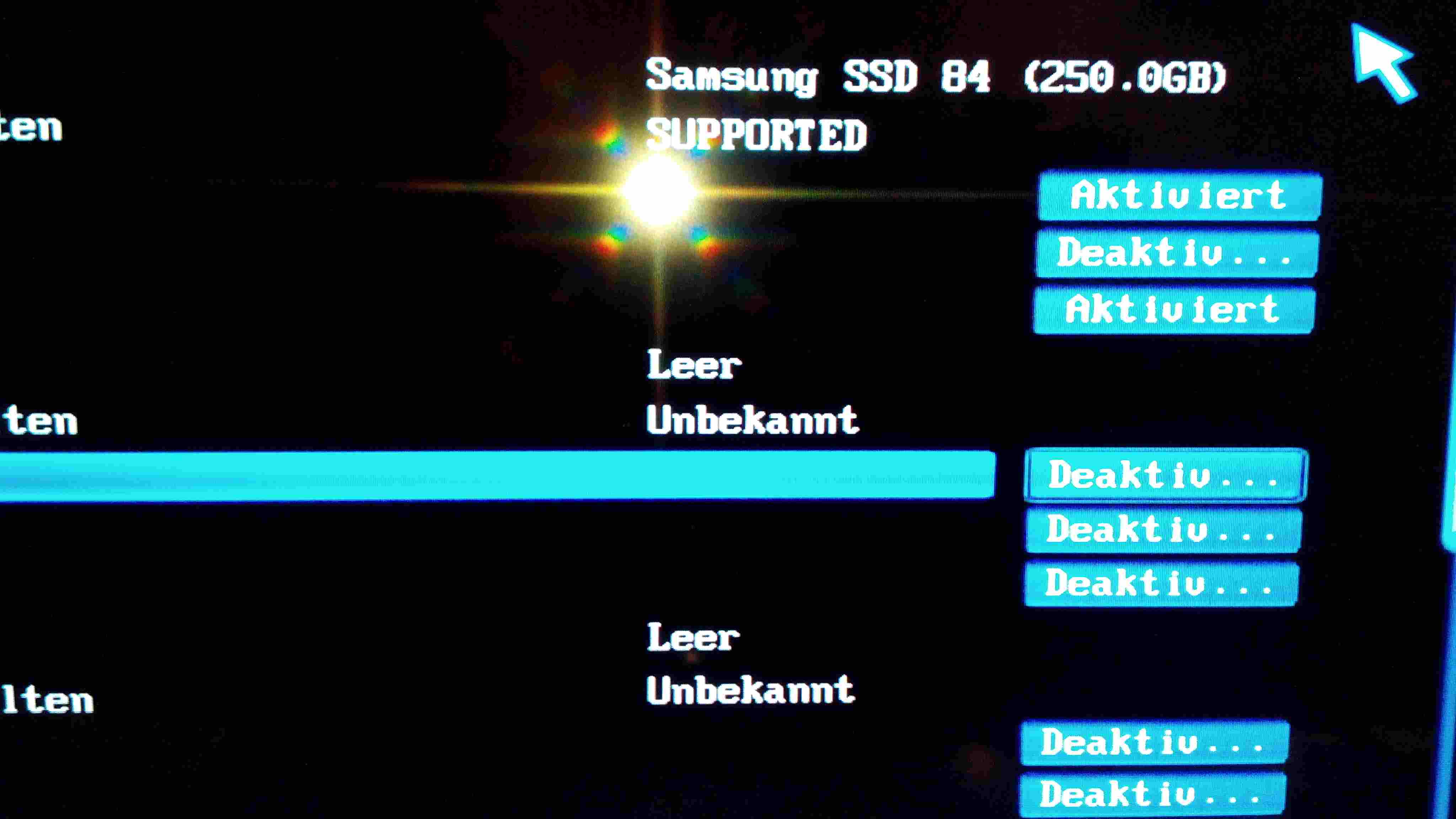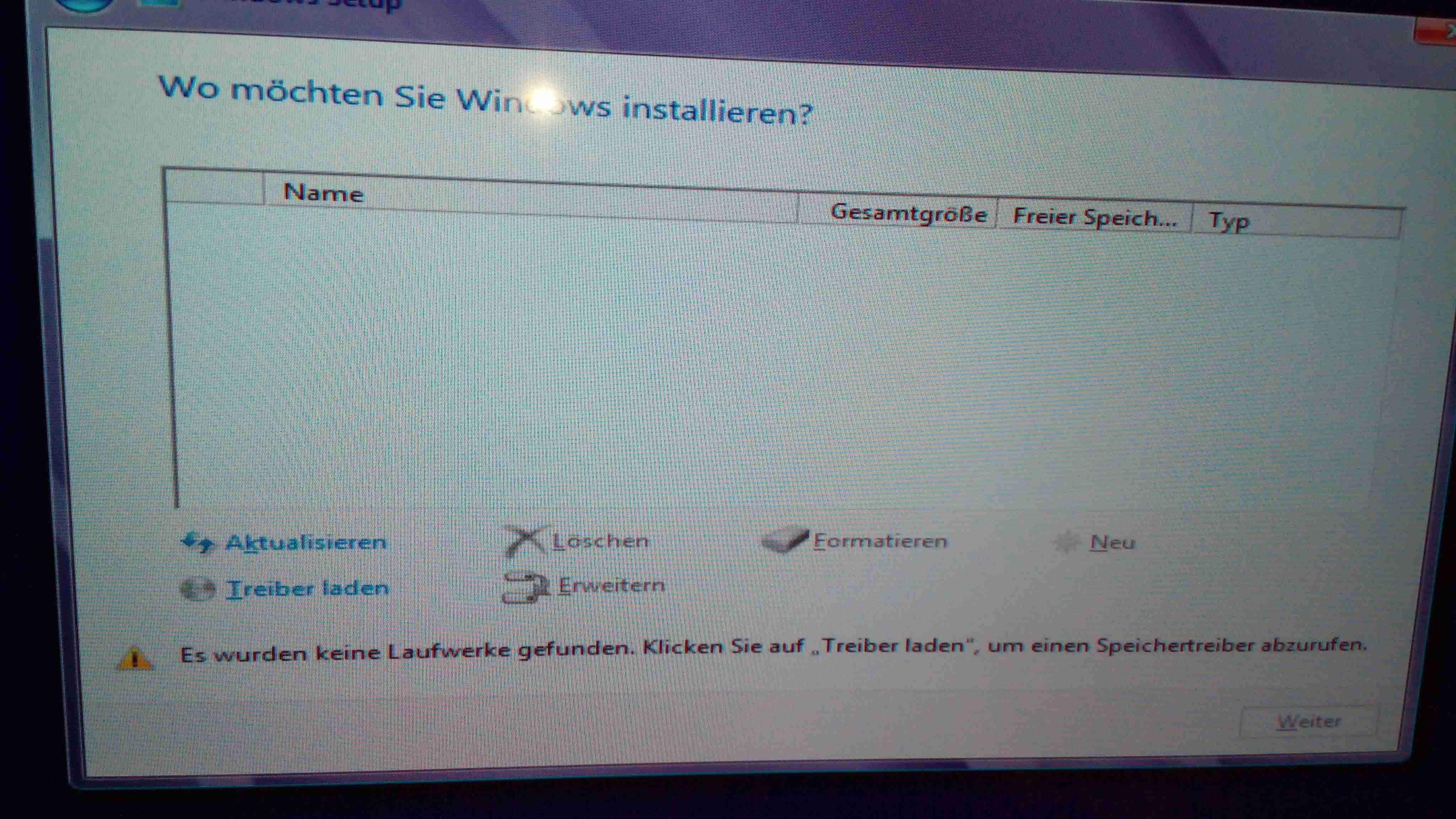 - SSD wieder zurück an das Gigabyte Board und das Windows Setup starten. Dann ein Bild von der Partitionsauswahl beim Setup machen