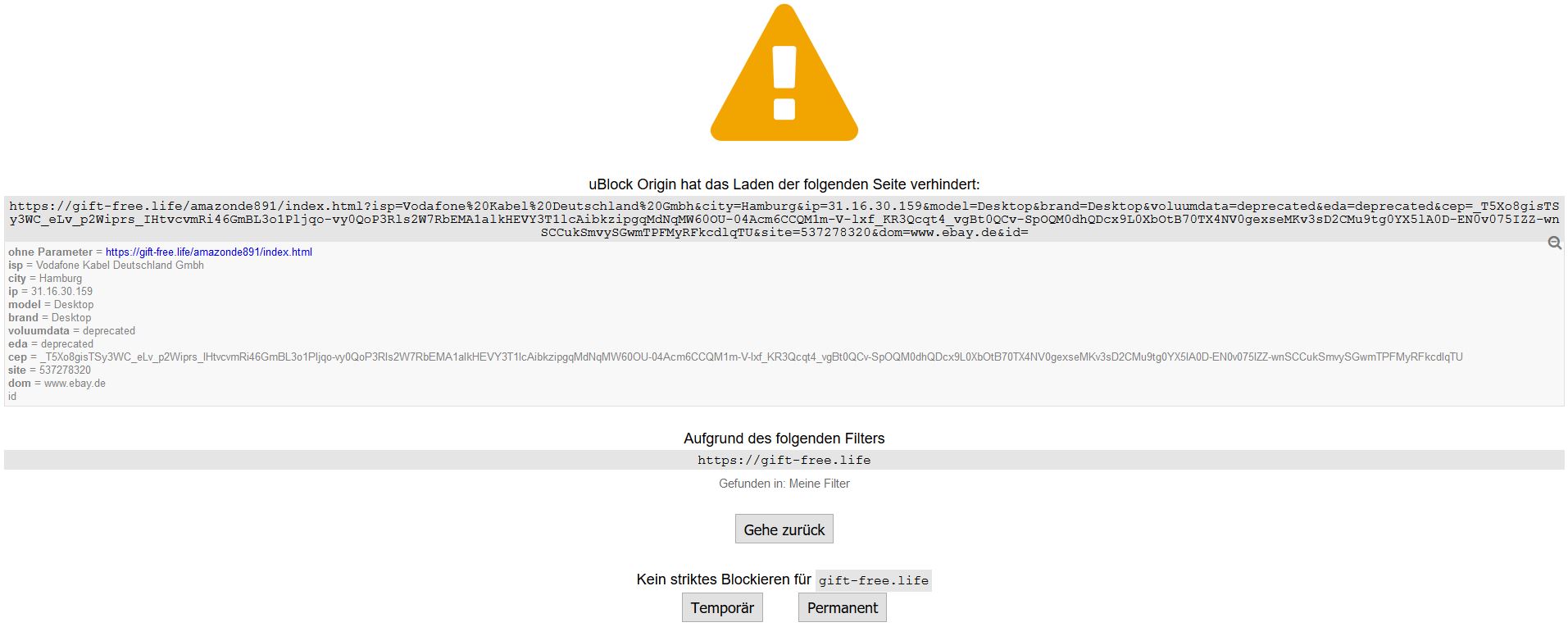 Habe eben diese Seite "https://gift-free.life" in den Adblocker in die Blacklist hinzugefügt und er blockt diese Werbung jetzt, siehe Bild Unbenannt.JPG