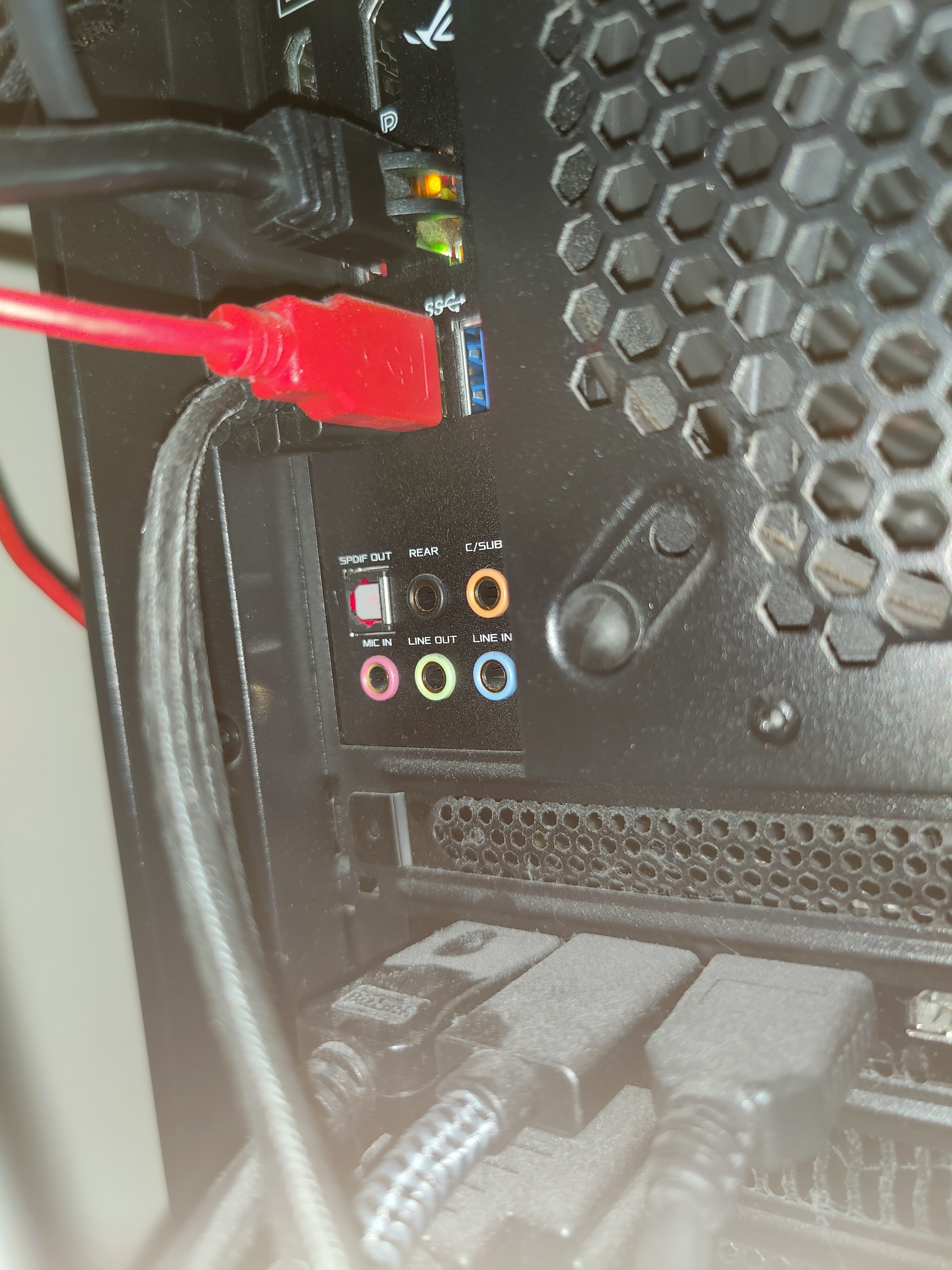 Das Motherboard des PCs ist ein ASUS - ROG Maximus XI Hero (WiFi), dort ist es über AUX verbunden. Ich habe zusätzlich noch ein