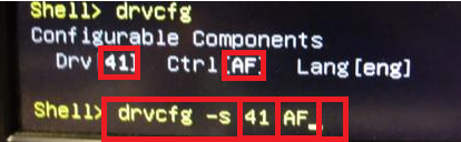 Nun habe ich im Internet gelesen, dass man statt dessen das UEFI aufrufen muss, so wie hier beschrieben. Aber wenn ich drvcfg eingebe, wird mir kein konfigurierbares Gerät angezeigt.