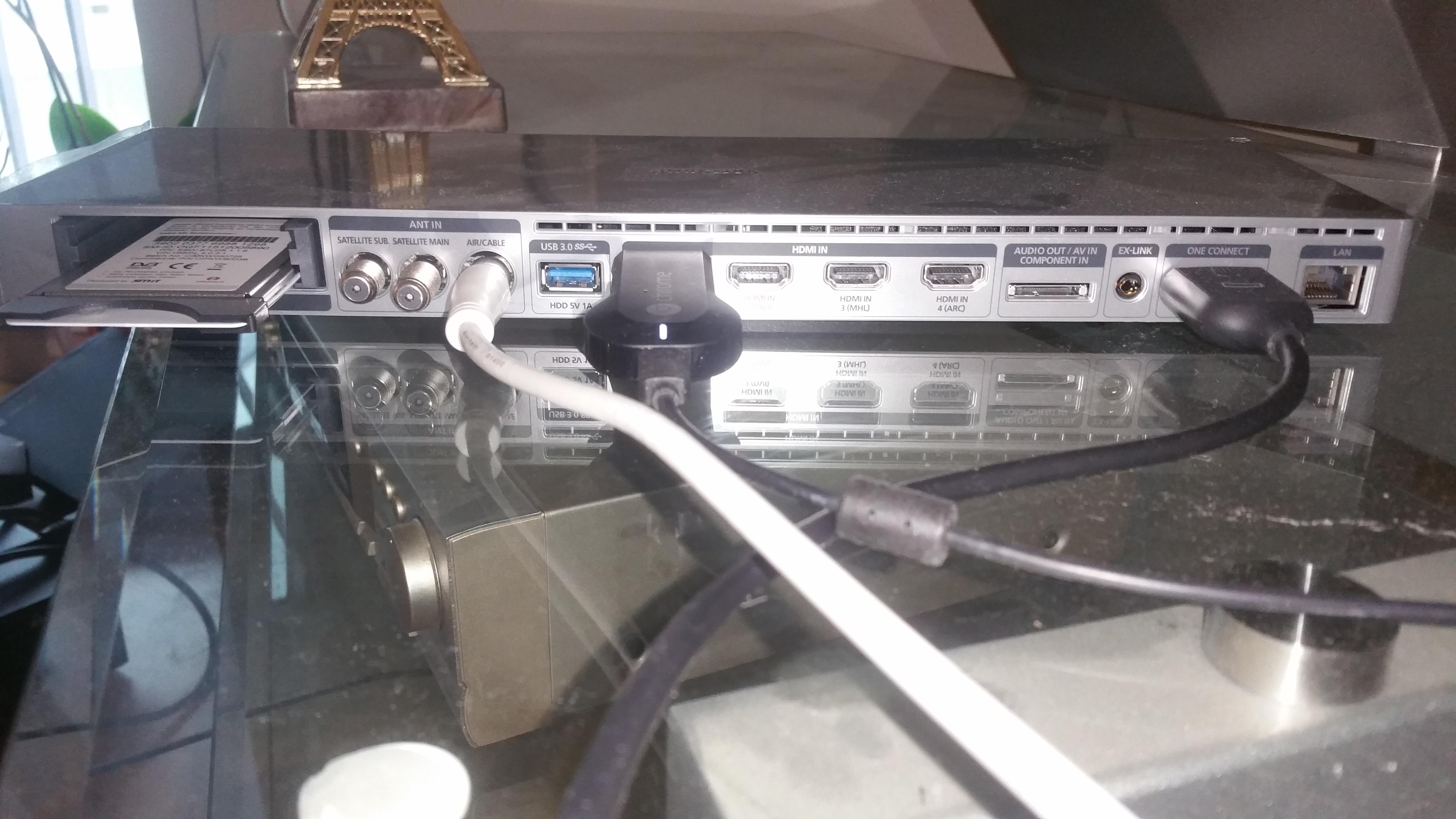 Ich habe euch mal die ganzen Anschlussmöglichkeiten des Verstärkers und des TVs als Bild im Anhang hochgeladen. Links seht ihr die Anschlüsse des Verstärkers und die Bilder in der Mitte und Rechts sind die Anschlüsse vom Samsung Fernseher.