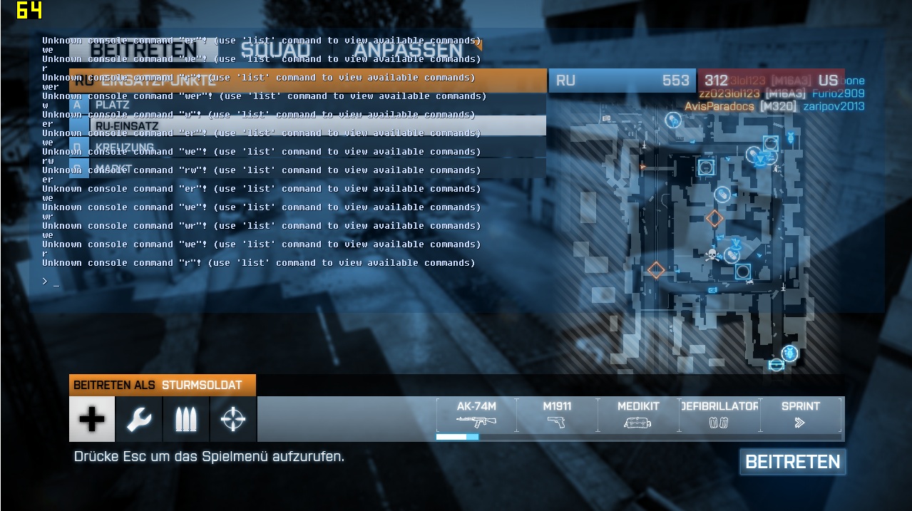 manchmal komme ich beim Menü gegen die ^-Taste und dann erscheint die Konsole.