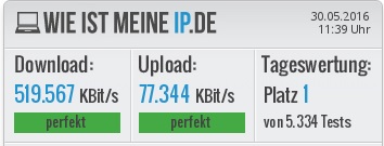 Morgens früh und spät abends/nachts ist es auch höher aber so im Durchschnitt ist 10-11 Mb/s die Regel beim Download.