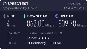 Habe alles nagelneu bei mir verkabelt mit CAT 7 (direkt vom FTTH ONT bis zum Endgerät) sowie eine nagelneue FB 7590 mit 7.12 FW. Ebenso steht mir ein potenter HP Laptop von der Firma zur Verfügung, der auf keinen Fall limitiert.