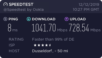Mich kotzt das aber echt immer mehr an, wenn ich zB sehe, dass Kabelkunden mit ihrem Shared Medium mit Full Speed unterwegs sind und ich mit meinem FTTH Anschluss eine derart mikrige DL Geschwindigkeit habe. Am meisten kotzt mich aber die Inkompetenz und Langsamheit des DG Supports an. MMn haben die sich mit der Vielzahl an gleichzeitigen Projekten massiv übernommen. Am Anfang (Nov 2018) war es nämlich noch nicht so schlimm. Aktuell wird aber wirklich jedes Kuhdorf ausgebaut ...