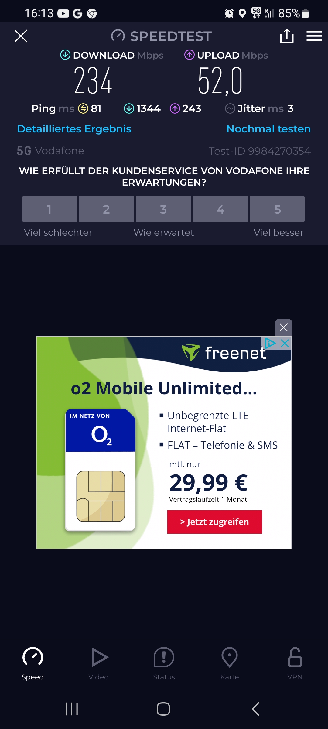 Bei o2, wo ich z.B. Mobilfunkkunde bin, kostet der Vertrag (mit mehr als 15 Mbit) ohne Volumengrenze auch 50€ (dafür haben wir ne 1000er Glasfaserleitung) und hat maximal 500/50 Mbit - und das sind halt reine Maximalwerte - bei DSL und Glasfaser kommt hier am Wohnort immer an, was gebucht wurde. O2 gibt selber diese Durchschnittswerte an:celolol schrieb:auf Mobilfunk um?