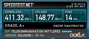 @ Aurum: Nö das stimmt nicht mit speedtest und Upload, bis 50 Mbit/s Upload geht das ganz gut ... darüber weiß ich nicht.