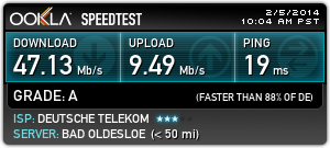 "Zuhause" in der Schweiz haben wir eine 1 Gbps Leitung von Swisscom. Ich kann nicht nachvollziehen das es kein schnelleres Internet in deutschen Großstädten gibt, selbst in Hamburg - wohl kein Bauerncaf - gibt's max. VDSL 50 von der Telekom, sofern man 'normales Internet' haben will und nicht übers Kabelnetz Internet haben will. Mir ist wichtig, dass das Internet nicht gedrosselt wird (wie jetzt, auch wenn es anders im Vertrag steht) und ich dynamische IP-Adressen habe. Mein Wohnhaus ist übrigens FTTH fähig und für wäre auch bereit 6 x so viel wie für VDSL 50 zu zahlen - trotzdem keine Chance.