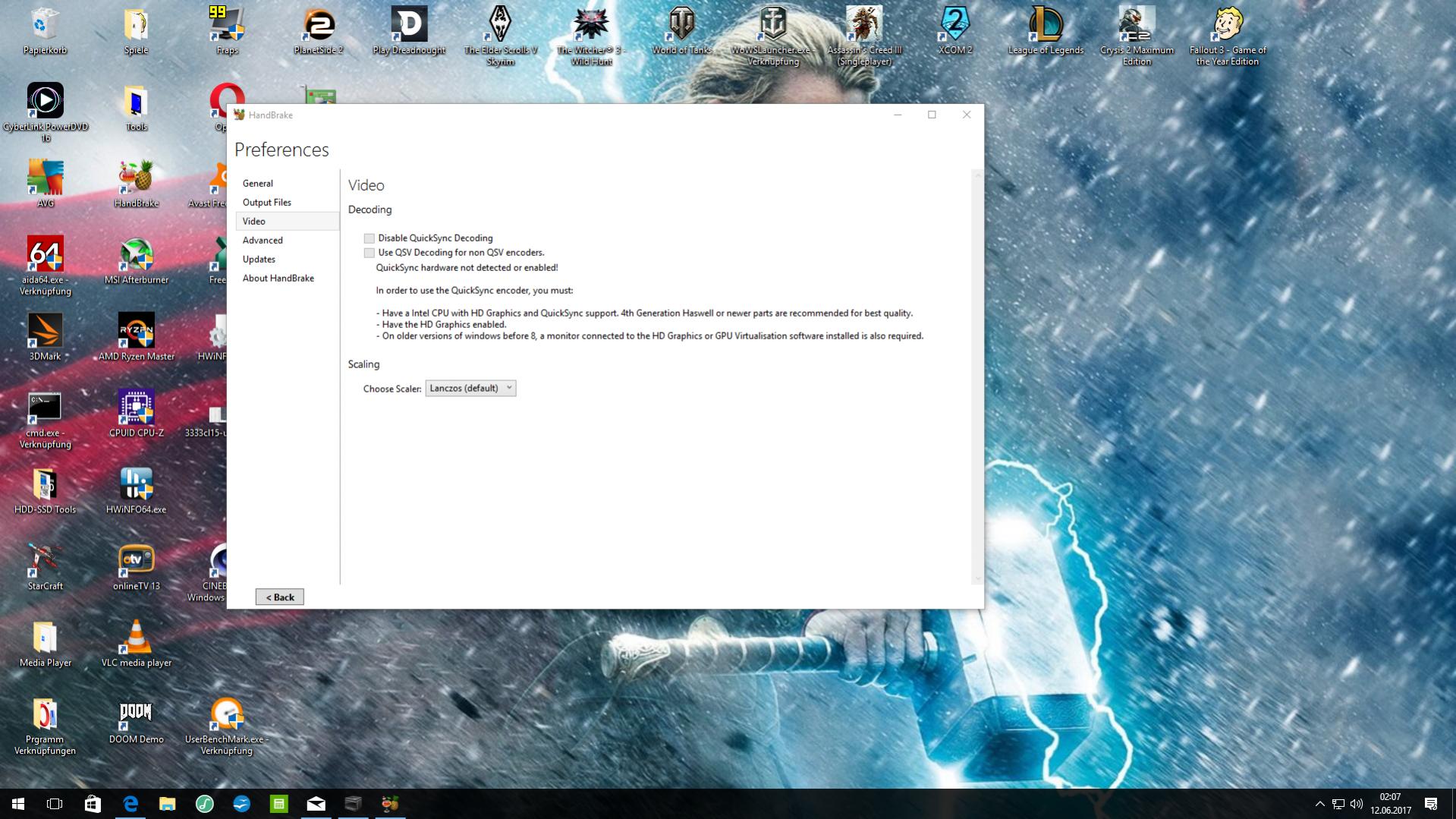 Nein quick sync ist deaktiviert. Konnte das auch nicht nutzen bei handbrake und hab gewundert warum. Bis ich dann Mal die GPU aktiviert hab. Hatte dann 100 FPS im encoding.