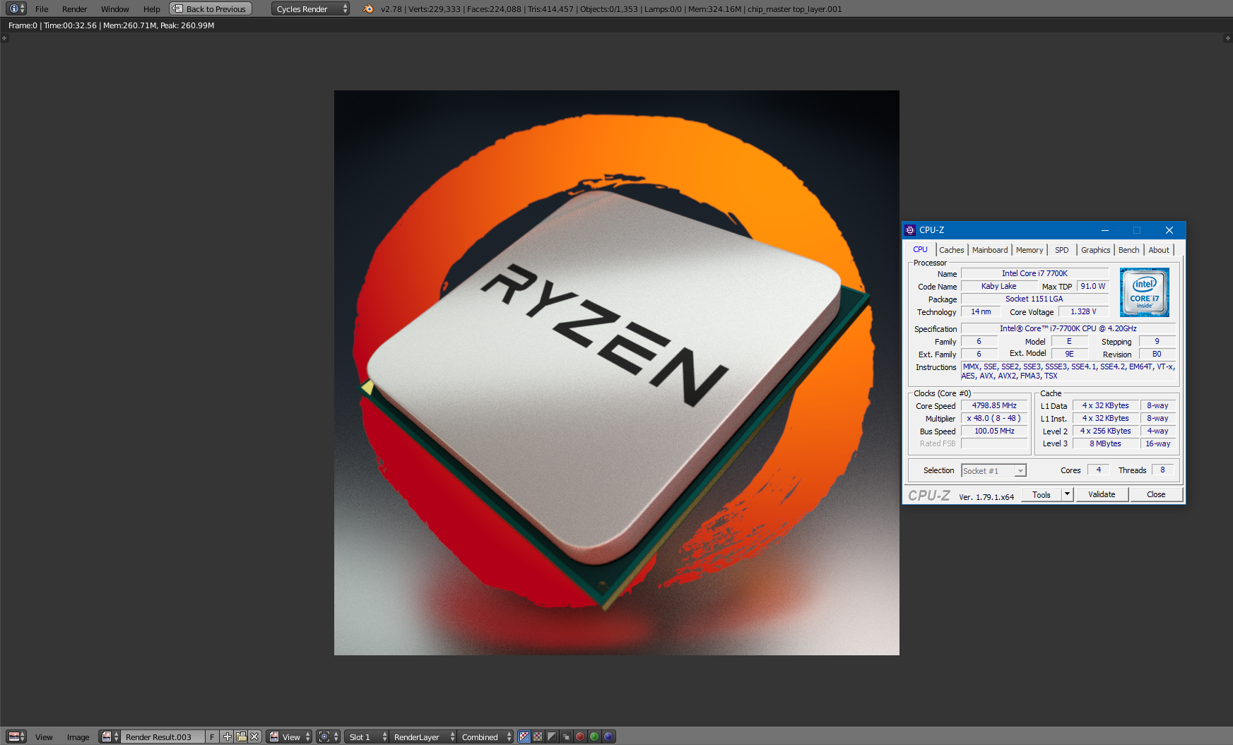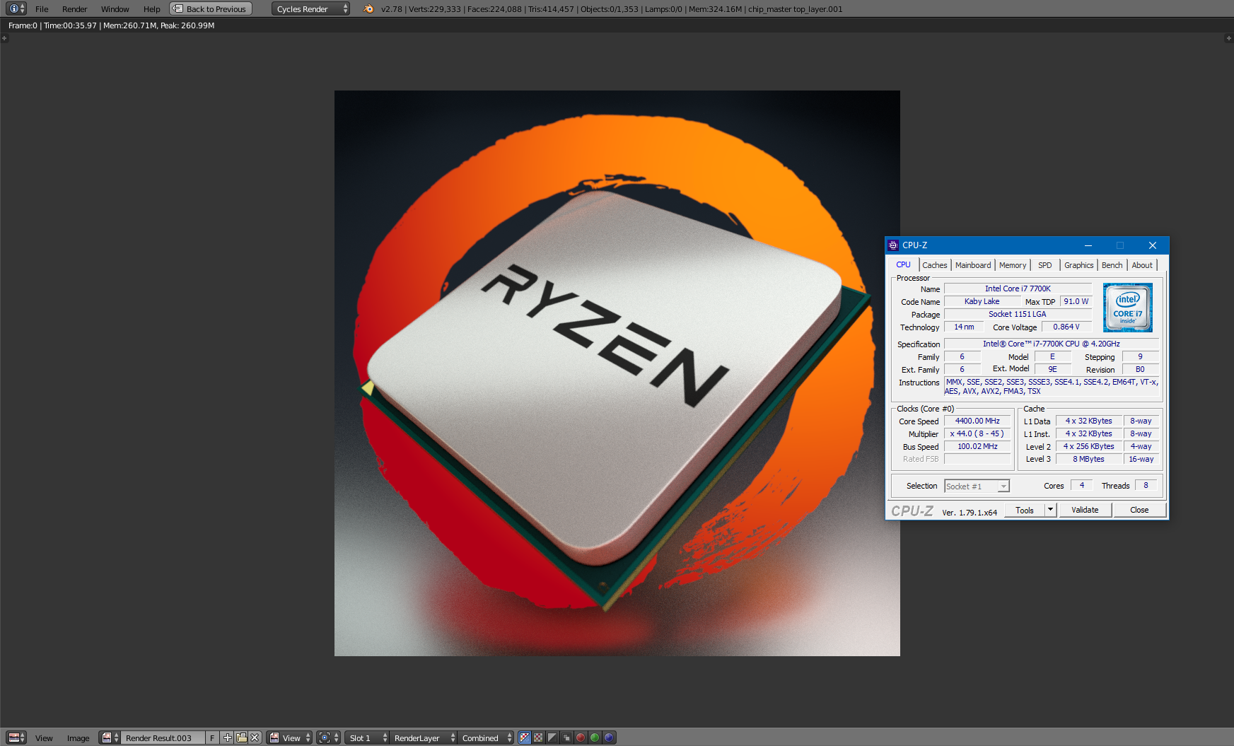 Nein, denn wenn du einrechnest, dass SMT ja auch etwas effizienter ist als HT, müsste der Unterschied gute 43% zugunsten Ryzen sein wie bei Cinebench. Das ist der Unterschied, wenn man 7700K 4.8 Ghz und Ryzen 4 Ghz vergleicht. Hier sind es aber nur 36%, das passt nicht. Intel schneidet also auch bei Blender übermäßig stark ab.