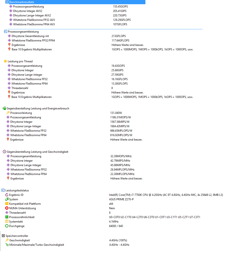 Interessant...auch hier ist der Kaby IPC mäßig für diesen Befehlssatz ~35% in IntAVX bzw 50% bei den LongIntAVX schneller. Aber wegen der doppelten Threadzahl trotzdem in Summe langsamer bzw. gleichauf.