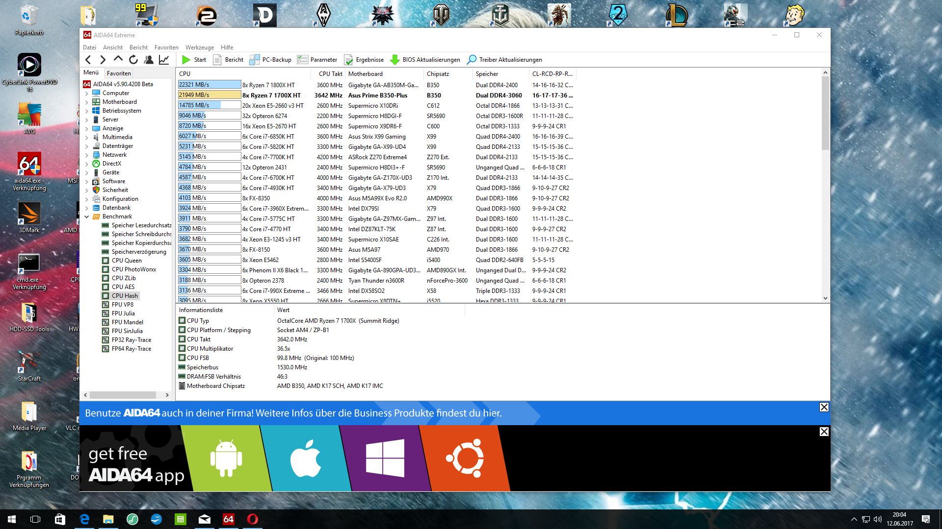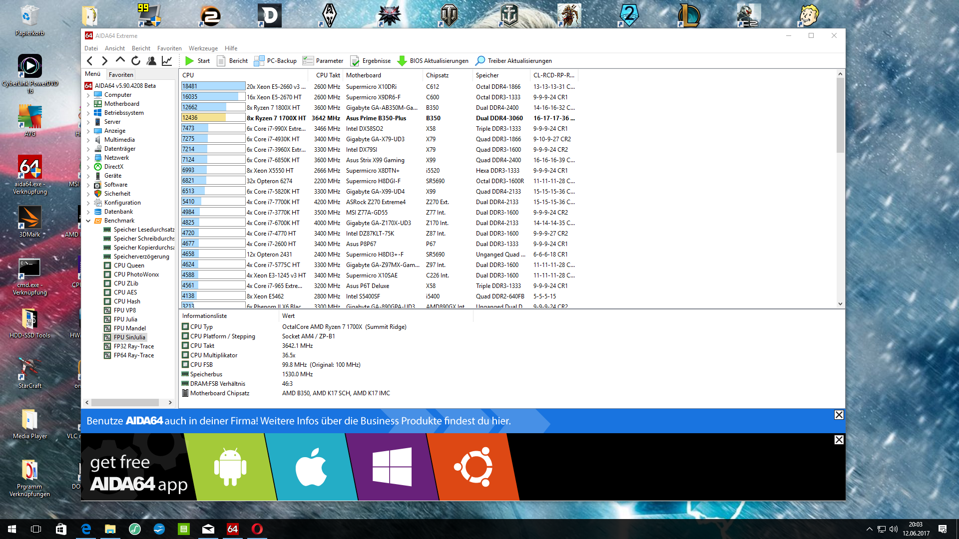 Das ein 3.0GHz R7-1700 trotz 16T von einem 5GHz i7-7700K mit 8T überholt werden kann sieht man doch schon beim Blick auf die 80% Taktvorteil.....bei gleichem Durchsatz an Micro-ops / Hz ist der i7 dann wegen der 5GHz dennoch genauso schnell wie ein 3GHz Ryzen....