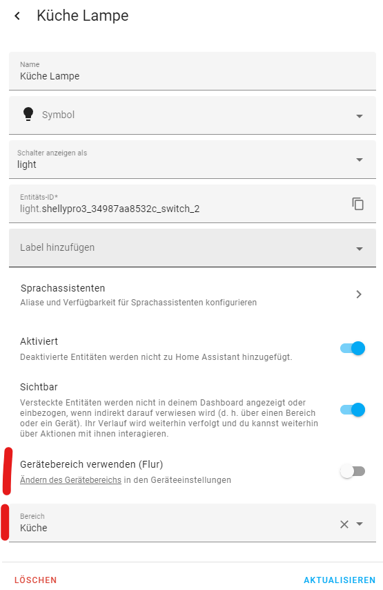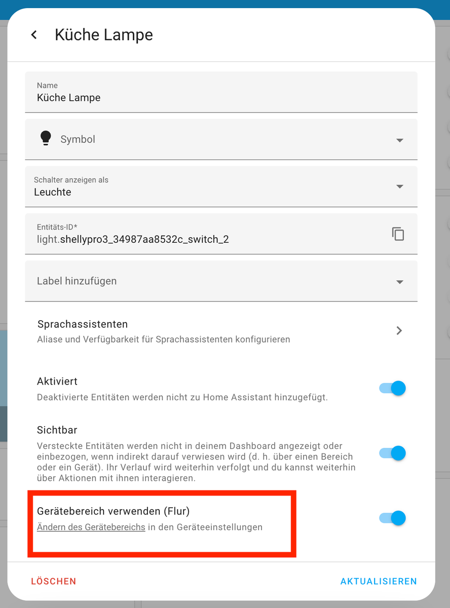 ich habe gerade das Problem, dass ich in Home Assistent einen Shelly Pro 3 gerne verschiedenen Räumen zuteilen möchte da zwei der Schalter das Licht im Flur steuern und der andere das Licht in der Küche.