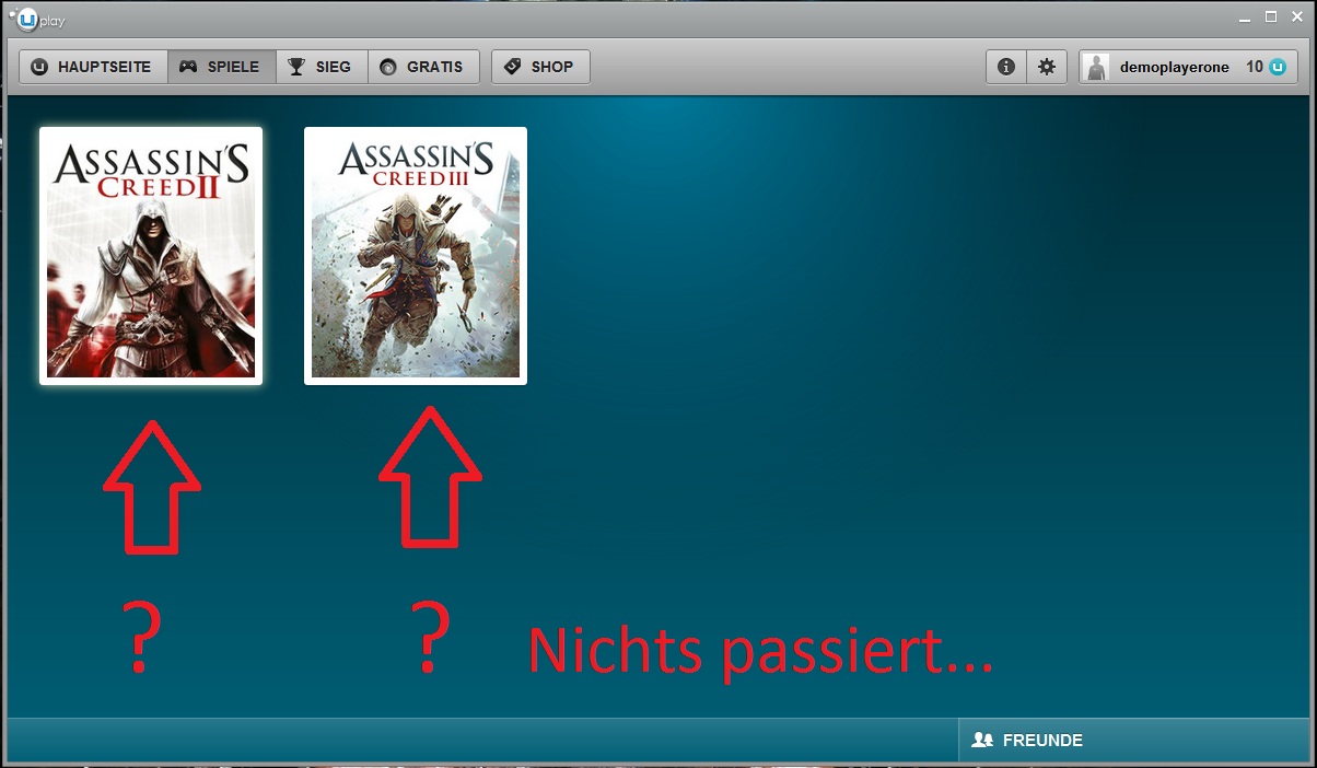 Ich kann die Spiele nicht starten. Habe sie beide in uplay. Ich gehe unter "Meine Spiele", klicke ich jedoch auf AC2 oder AC3 passiert einfach nix...