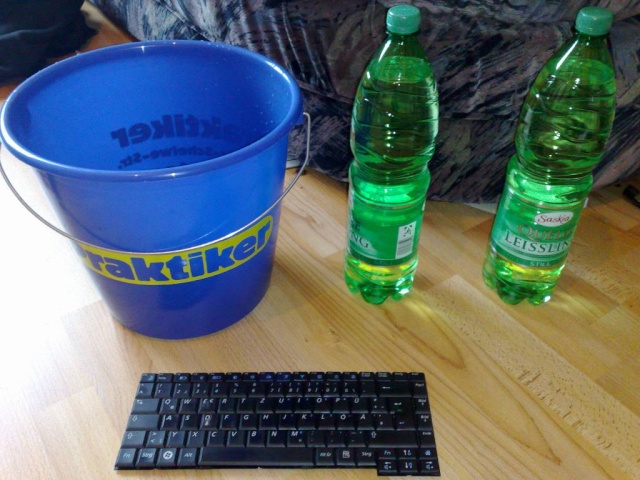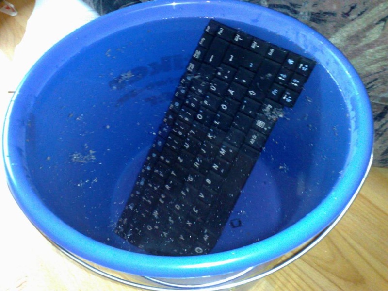Tastatur kannst du einfach rausnehmen, achte dabei aber auf das Tastaturkabel. Die Tastatur legst du einfach in Wasser, lässt es paar Minuten ziehen und anschließend ordentlich trocknen lassen.