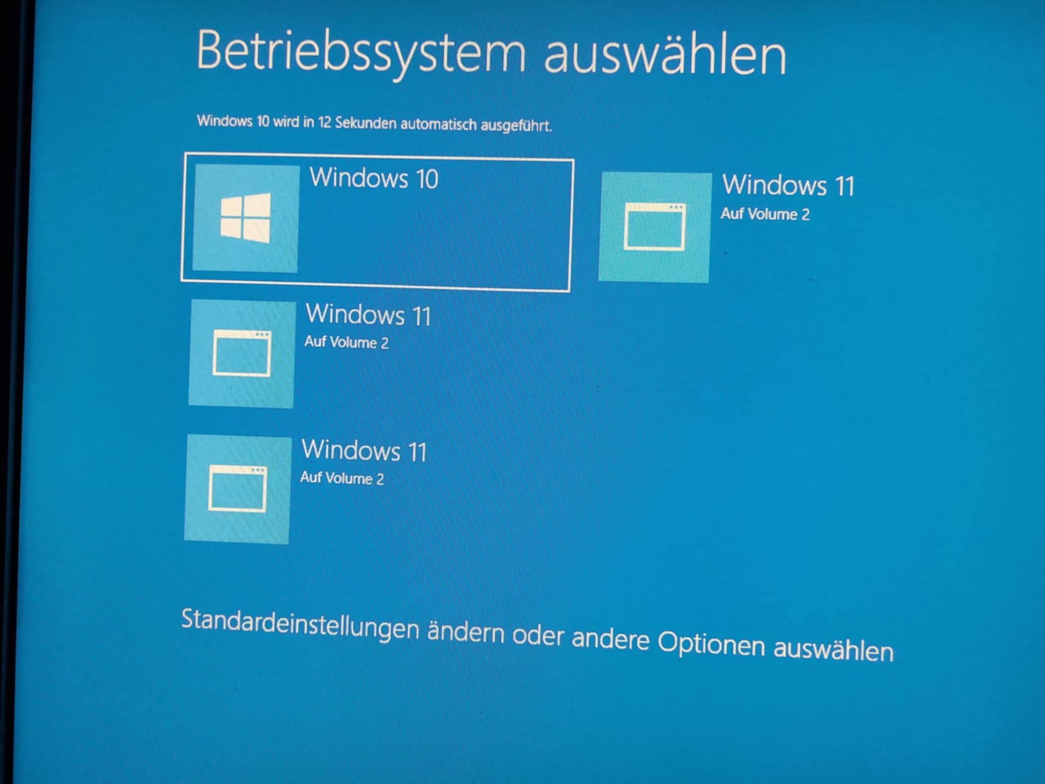 Und, interessanterweise, kommt nach jedem darauf folgenden Neustart die Betriebssystem-Auswahlmaske lt. beilieg. Foto. Nach jedem neuen Upgradeversuch kommt ein weiteres Windows11 dazu, nur bringt das Anklicken nichts, da es in Wirklichkeit ja nicht installiert ist.