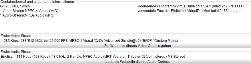 verwendete Encoder-Bibliothek : XviD 1.2.0.dev47 (UTC 2006-11-01)