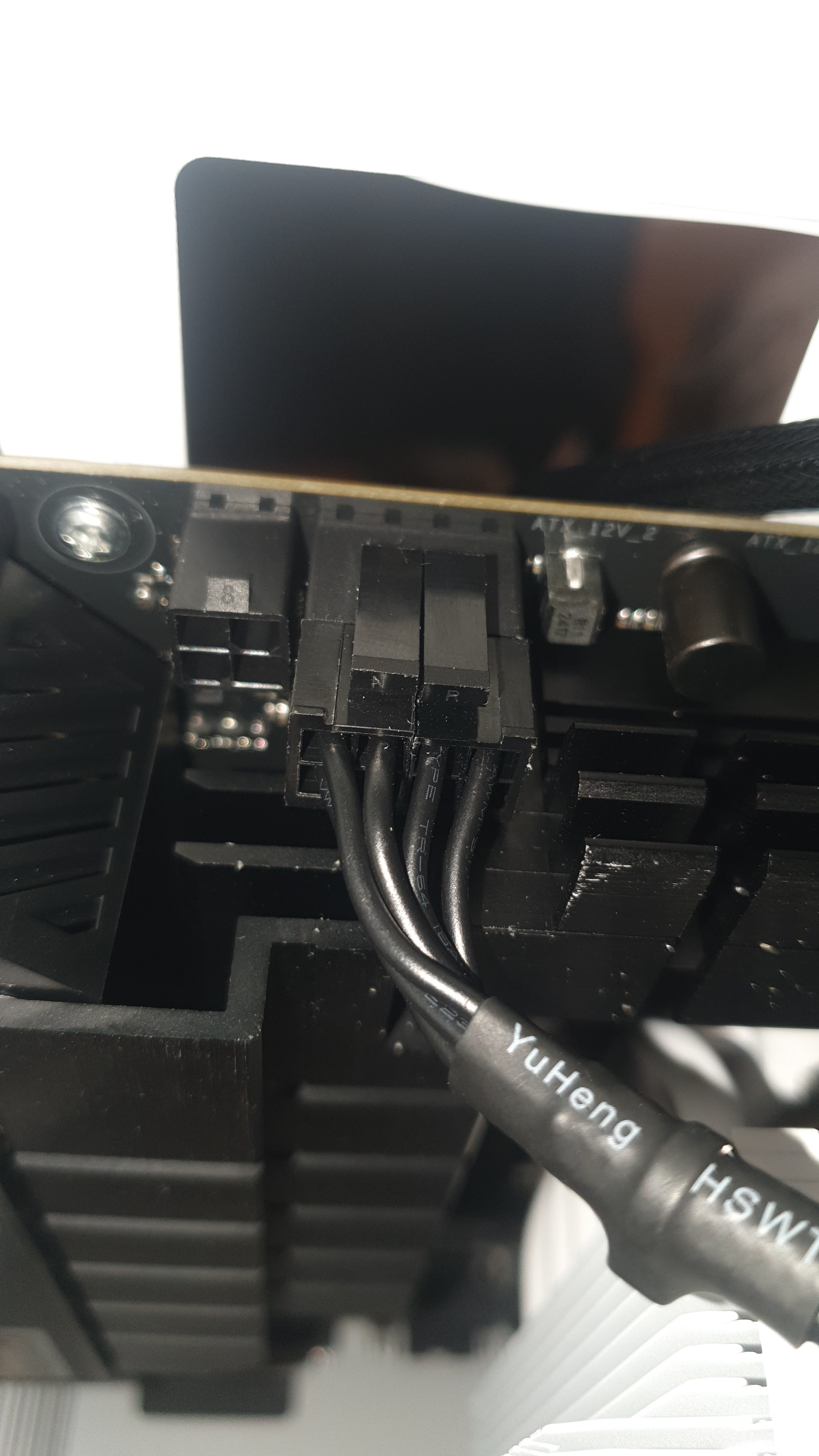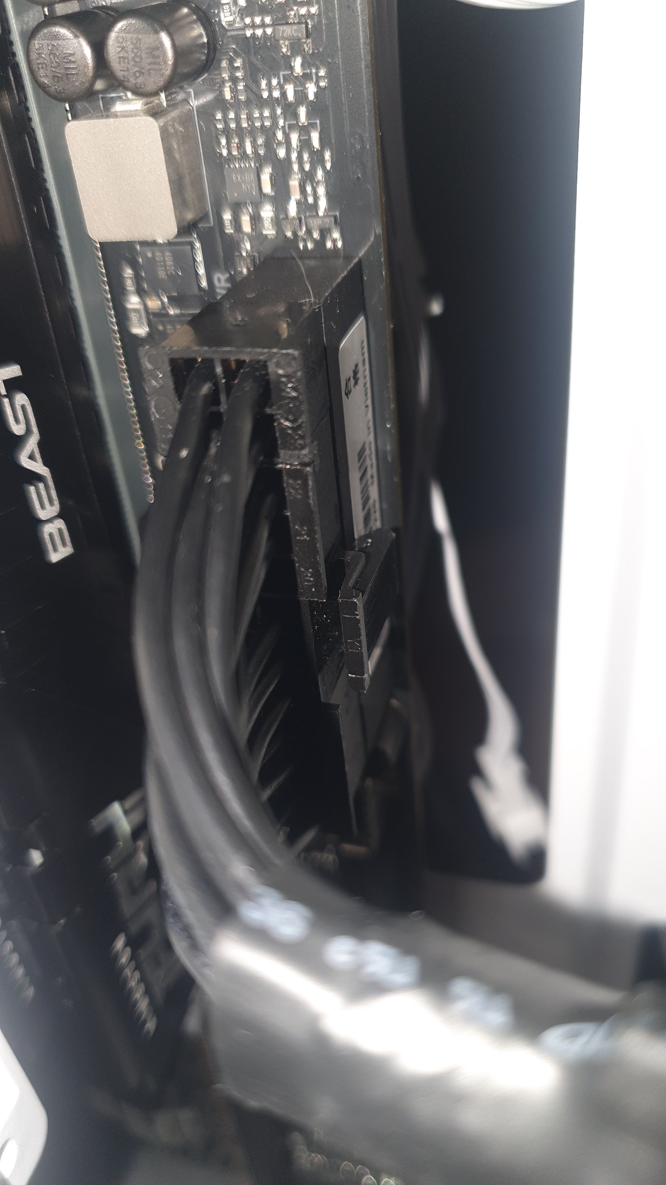 Ich vermute mal stark, dass die ATX-Kabel vom Netzteil in ATX-PWR müssen, und die CPU-Kabel in ATX-12V-1 oder ATX-12V-2, je nachdem ob man 4 oder 8 Pins verwenden muss. Ich hab jetzt beide CPU-Kabel in ATX-12V-1 getan, weil 8 Pins ja vermutlich besser als 4 Pins sind. Aber da ja gerade das Netzteil ziemlich viel kaputt machen kann, wollte ich nochmal sicher gehen, ob das so richtig ist. In der Anleitung stand nur, man soll entweder 8 oder 4 Pins verwenden, nur nicht wie genau.