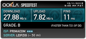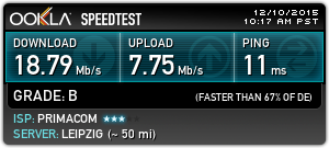 ich habe seit einigen mit meinem Provider zu kämpfen. Seit Anfang November spielen meine Donloadraten PingPong. Ich habe bei meinem Anbieter (Primacom) ein 150Mbps Paket gebucht, nur leider kommen diese nicht mehr an. Mitlerweile kann ich froh sein, wenn wenigstens 50Mbps ankommen. Hier mal ein kleiner Einblick: