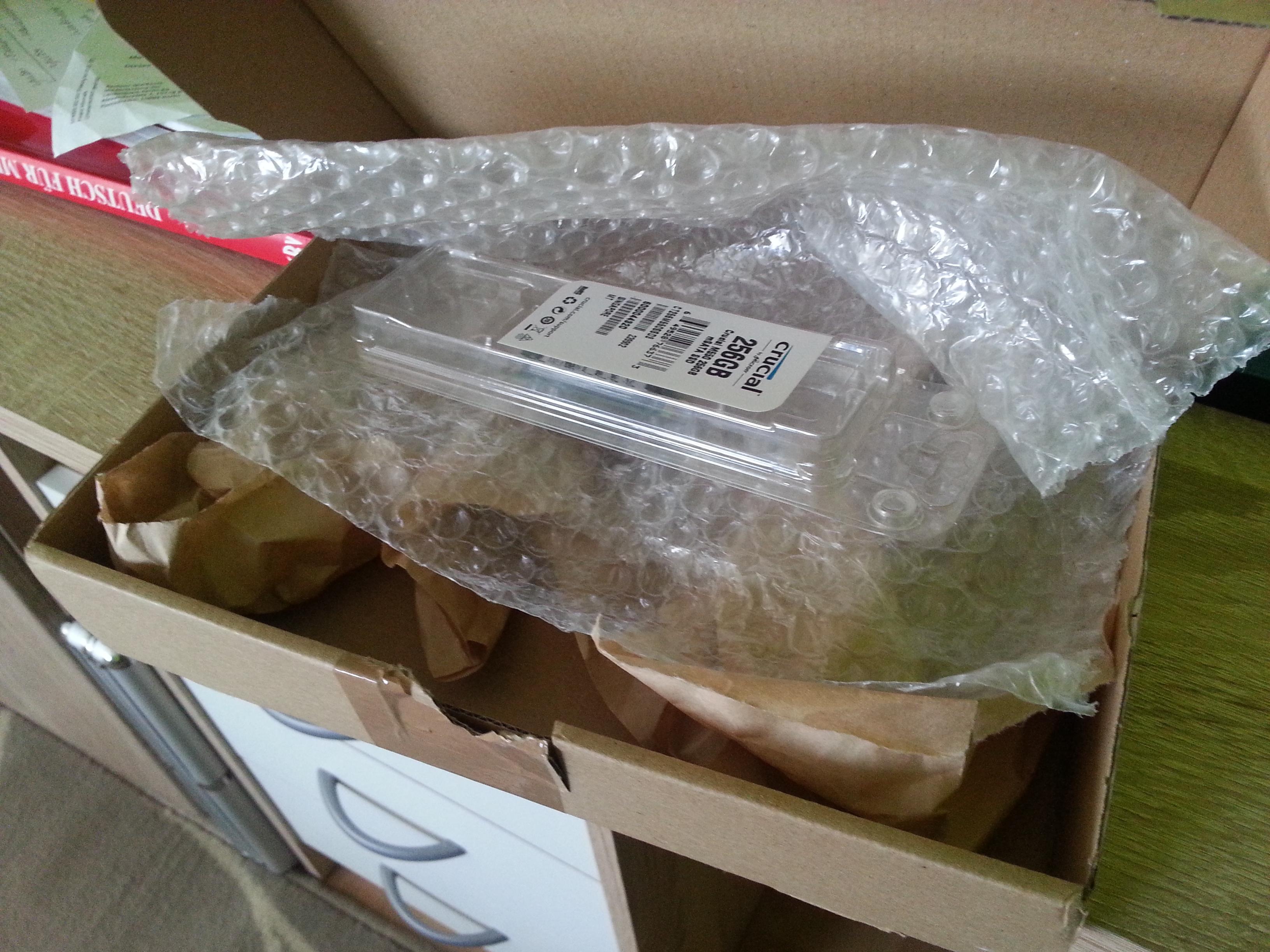 da meine SSD-Festplatte (mSATA SSD) einen Fehler hat, wird sie zurück an den Verkäufer geschickt. Die Originalverpackung habe ich zwar wieder gefunden, doch obwohl diese Mini-Plastikschachtel sehr schmal ist, ist die SSD innerhalb dieser dennoch lose und könnte beim Transport etwas hin und her geschleudert werden. Diese kleine Plastikschachtel würde ich zwar innerhalb eines Kartons, geschützt mit Papier und Luftpolster schonend lagern, aber da wo die SSD selbst gelagert, bereitet mir Sorgen. Wie sie ursprünglich dort drin befestigt war, weiß ich leider nicht mehr. Hat jemand eine Idee, wie ich es machen kann bzw. wo ich sie sicher reinlegen und befestigen könnte?