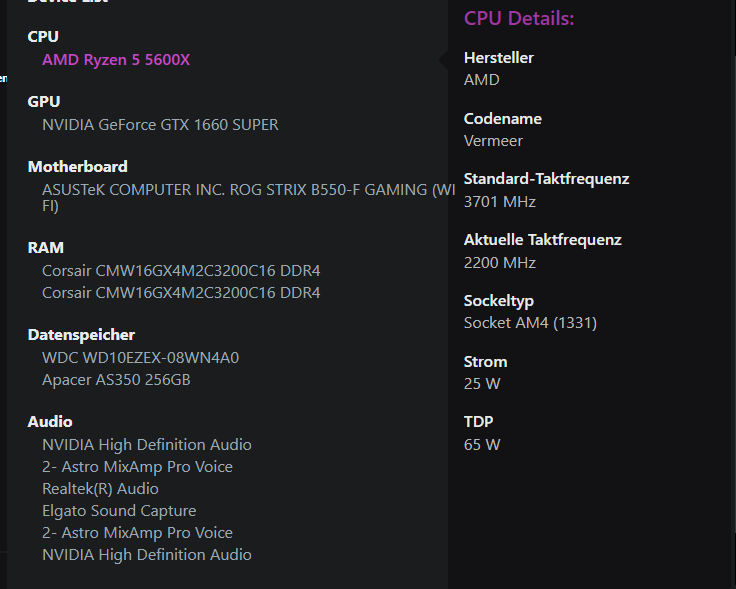Mainboard, CPU, GPU und Arbeitsspeicher sind ca 1 bis 2 Jahre alt.