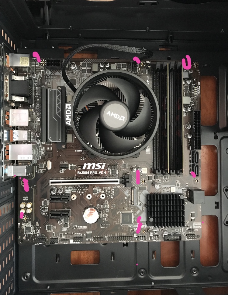 Hallo, habe ein Azza 250 Gehäuse und ein MSI B450 pro vdh. will es gerade einbauen aber ich glaube die löcher stimmen nicht mit den gehäuse überein ? Ich habe 9 schrauben insgesamt, muss ich alle verbauen ?