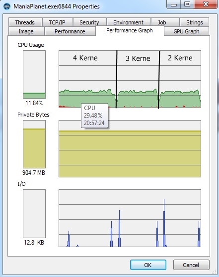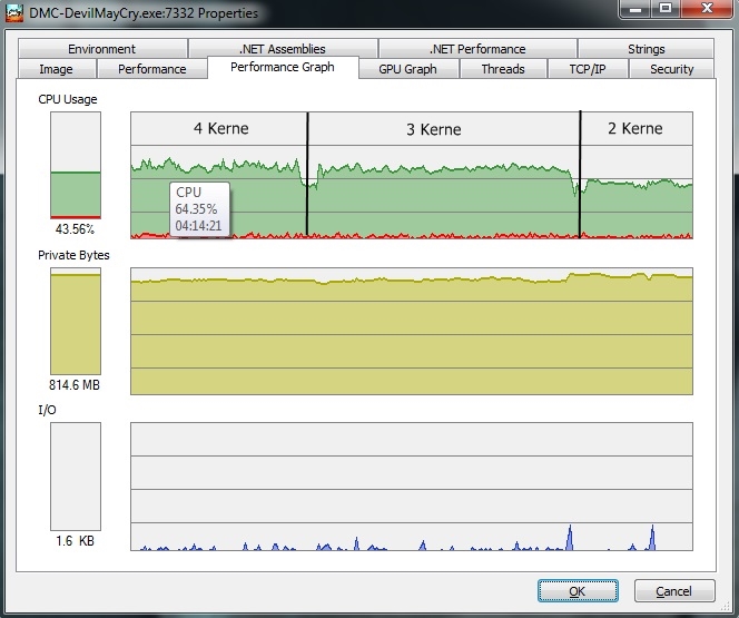 So eine gleichmäßige Auslastung bekommt man nur wenn man immer auf die gleiche Stelle schaut, bei normalen Spielen schwankt die Auslastung viel stärker. Dies stellt den ideal Fall dar mit der höchsten Auslastung (die ich gefunden hab), dennoch kann man eindeutig von 4 Kernen sprechen.