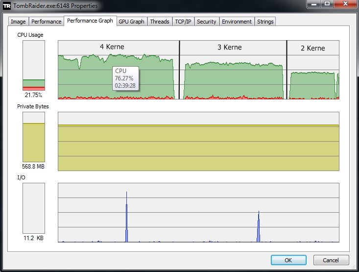 Hab das Spielinterne Benchmark genutzt und würde sagen das Spiel nutzt 3 Kerne. (die DirectX 11 Erweiterungen waren abgeschaltet)