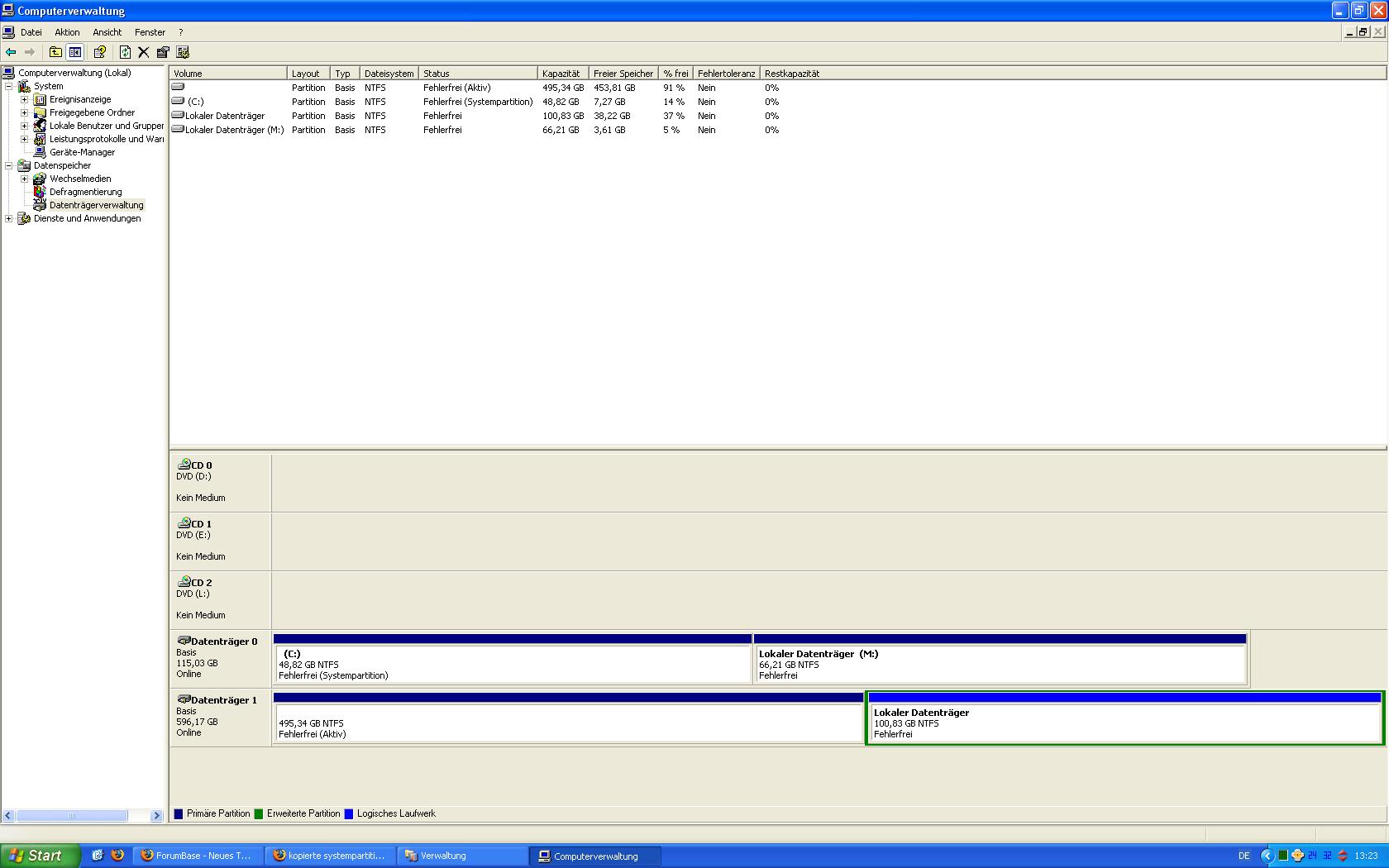 ich habe meine zu kleine Festplatte (Datenträger 0), die aus der Systempartition und einer weiteren Partition besteht, auf eine größere Festplatte (Datenträger 1) mit Acronis Disk Director Suite kopiert.