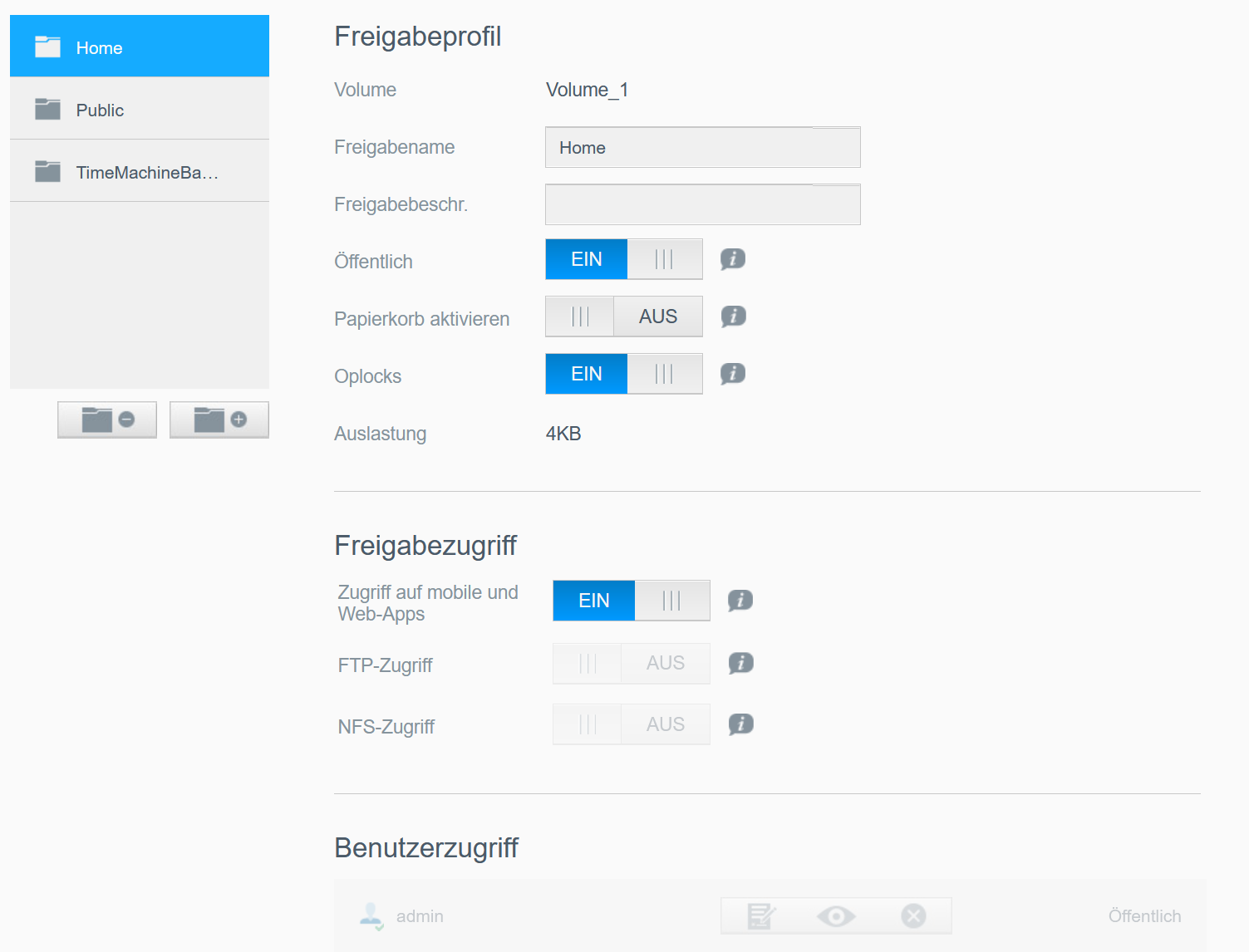Auf Deinen Bildern sehe ich auf dem Nas keinen Ordner Home freigegeben - Der Home Ordner ist doch da zu sehen.