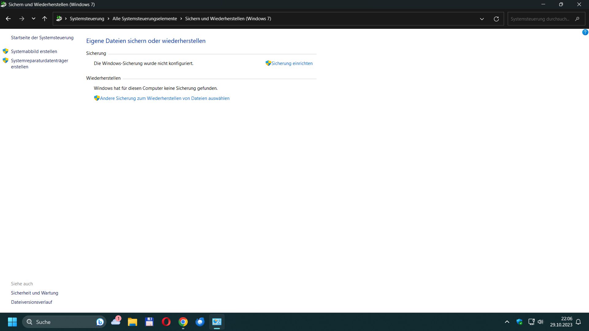 Diese Darstellung von den Laufwerken bekomme ich aber auf meinem System nicht zu sehen. Siehe Screenshot. Läuft das unter Win 11 anders? Was muß ich machen um das Backup löschen zu können. Das Backup wiederherstellen wäre möglich wenn ich auf "andere Sicherung zum wiederherstellen von Dateien" auswähle.