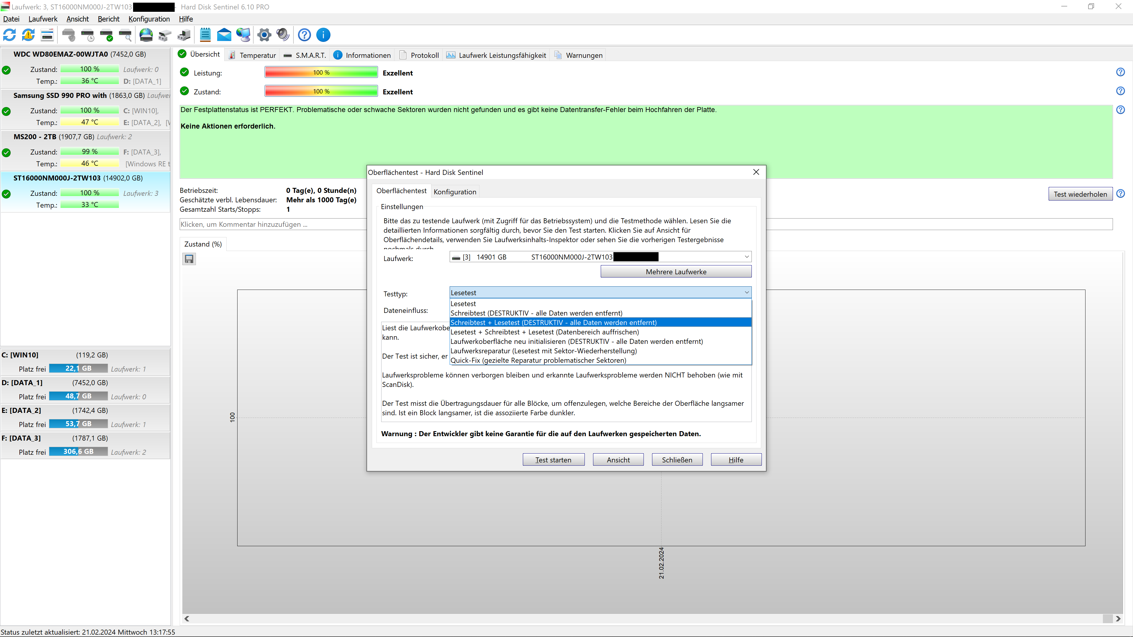 Jetzt würde ich gerne wissen, wie ihr die "recertified" HDDs prüfen würdet. Ich prüfe meine HDDs bisher mit "HD Sentinel", indem ich sie einmal mit zufälligen Daten beschreibe und anschließend das Geschriebene verifizieren lasse (lesen). Was würdet ihr noch testen?