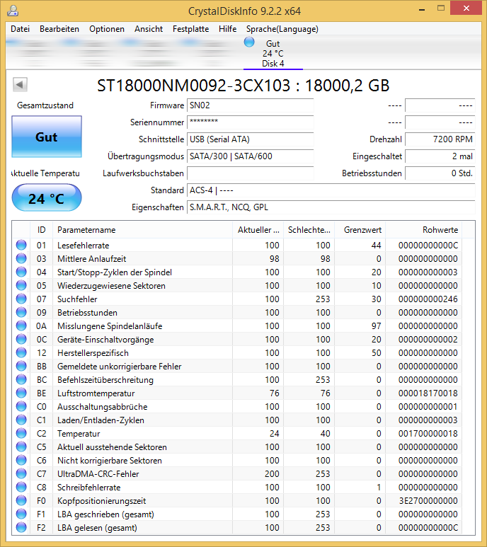 Mir fehlt leider das Externe Gehäüse um sie Ausgiebiger zu Testen und an meinen Desktop will ich sie nicht klemmen bzw keine Lust den 4 Tage laufen zu lassen
