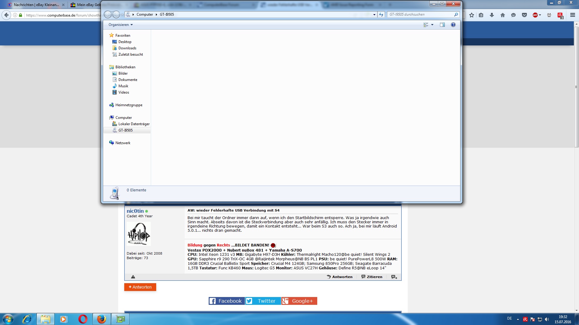 hatte davor ein S3, USB Treiber von Samsung installiert, doch die USB Verbindung brach entweder nach kurzer Zeit ab oder der Ordner war leer.