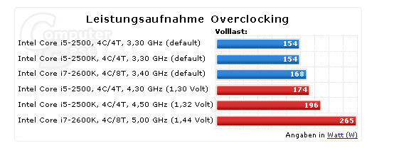 So einfach ist es also nicht, heißt: die 265W für den 2600K unter Last beinhalten ja auch den Rest des Systems. Die CPU wird mit Prime unter Vollast gesetzt, aber die GPU (+andere Komponenten) idelt ja trotzdem mit.