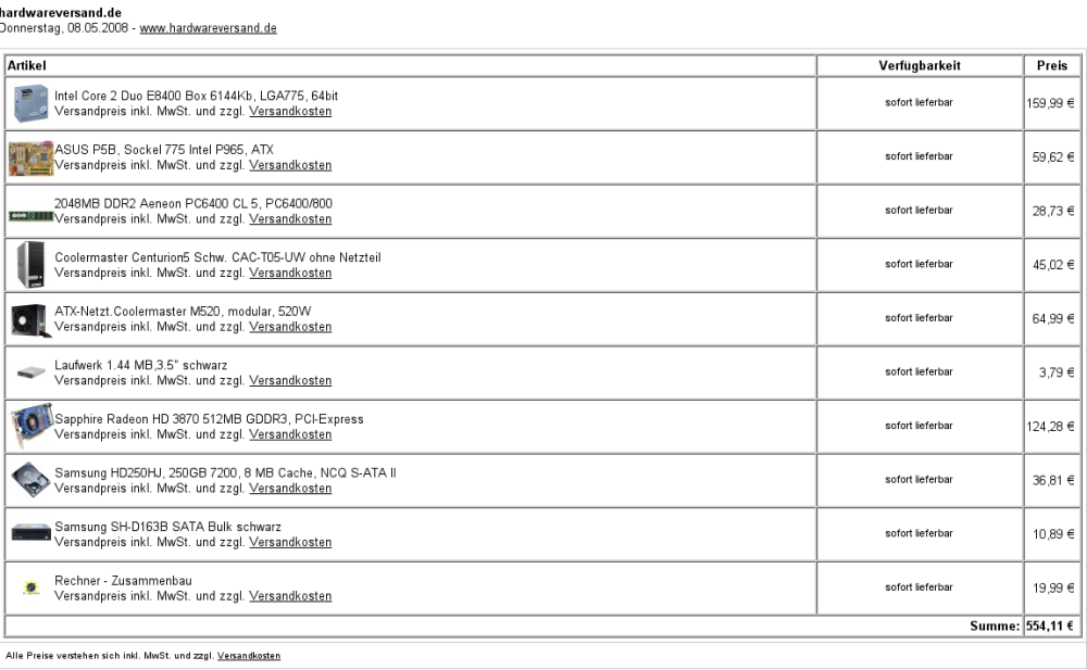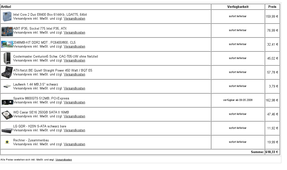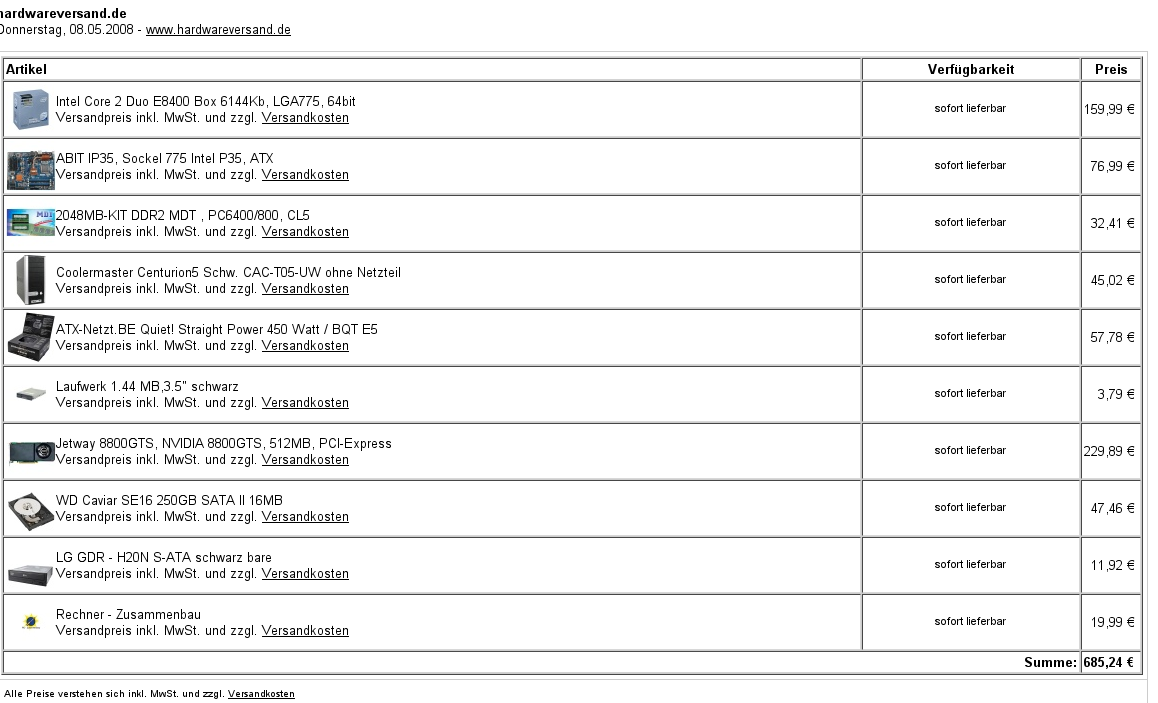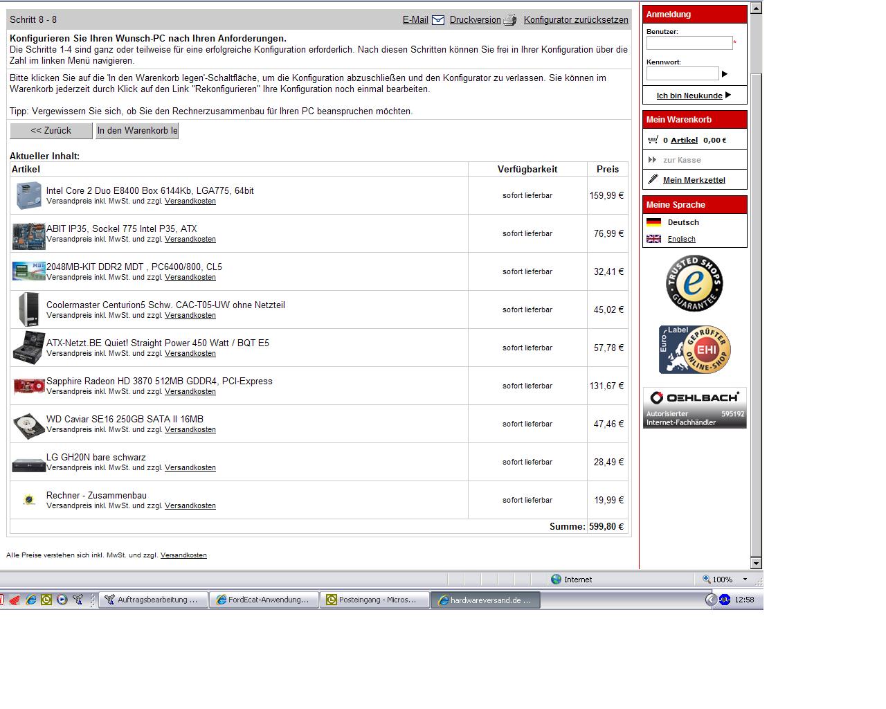 Preis sollte möglichst nicht zu weit über 600,- gehen und bestellt und zusammengebaut soll er bei hardwareversand.de werden.