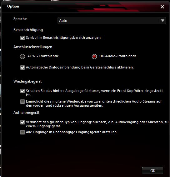 Ich möchte das beide Ausgabegeräte gleichzeitig erkannt werden und ich bei bedarf per Mausklick zwischen ihnen wechseln kann und nicht immer den Lautsprecher Klinkenstecker entfernen muss.