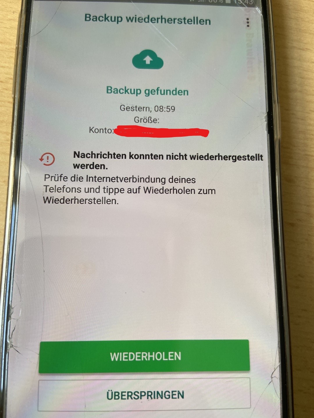Wiederherstellen von Whatsapp-Sicherung auf Google Drive auf Xiaomi Handy funktioniert nicht