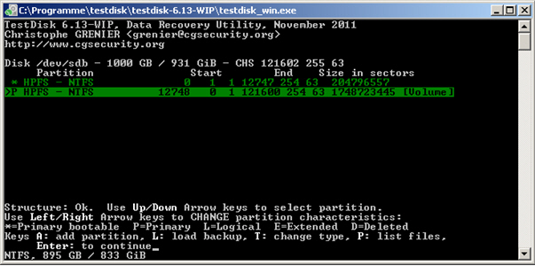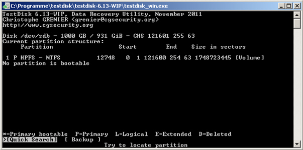 Irgendwie schaffe ich die Wiederherstellung mit Testdisk nicht. Vielleicht kann mir jemand sagen, was ich falsch mache: