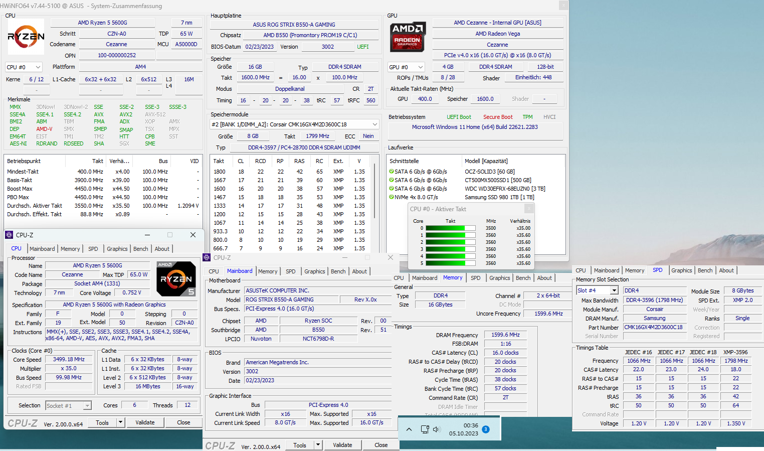 - Prozessor (CPU): Ryzen 5 5600G mit Arctic Cooling Freezer A35 CO