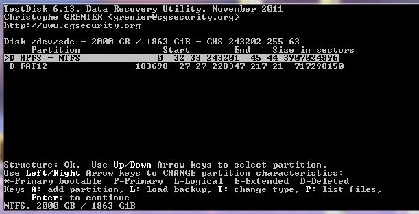 4. Testdisk (neueste Version) zur Analyse genutzt: