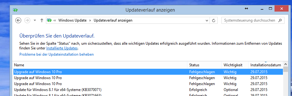 zuerst: ich MUSS nicht einer der ersten sein und das Update noch nicht direkt heute haben, aber mich verwundert es sehr, dass mein System auf PC sowie auf Laptop versucht, das Update automatisch zu installieren und dabei der Fehler 80240020 auftritt. Auf dem Laptop ist es eine normale Windows 10 Version, auf dem Desktop Pro und bei beiden steht der Updateversuch im Verlauf mit diesem Fehlercode. Im Forum und auf anderen Seiten habe ich den Tipp gefunden, den Inhalt des Ordners "C:\Windows\SoftwareDistribution\Download und dann den Befehl "wuauclt.exe /updatenow" ausgeführt, wonach das Upgrade manuell angestoßen wurde, aber nach einer Zeit wieder mit dem Fehlercode 80240020 sowie 80070057 abbricht. Hat einer von euch eine Idee woran das liegen könnte? Immerhin tritt es bei zwei völlig unterschiedlichen Systemen mit unterschiedlichen Versionen auf. Ich verfüge über VDSL, glaube also nicht, dass es am Download liegt, dass der so lange dauert und deswegen irgendwie fehlerhaft wird.