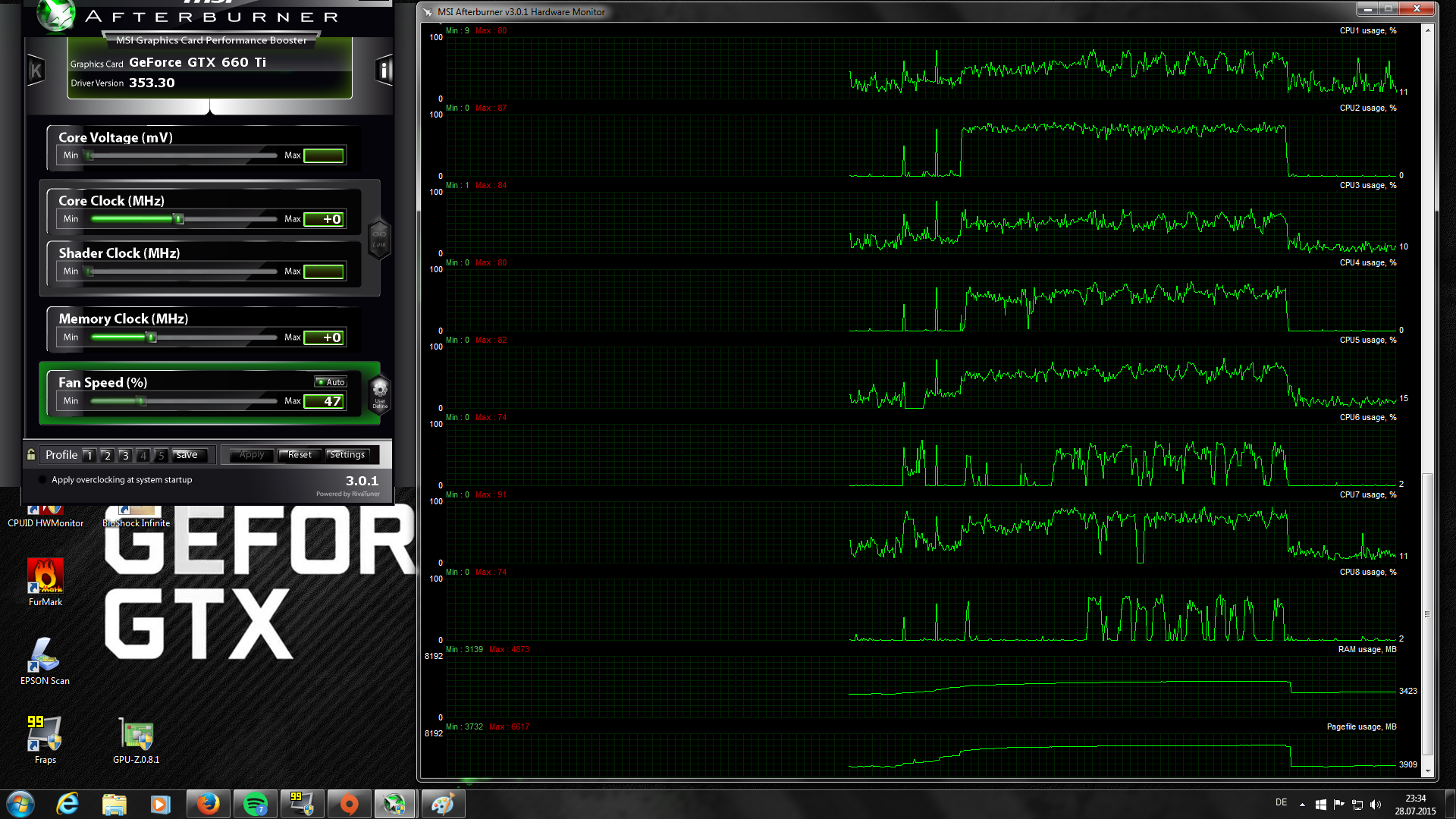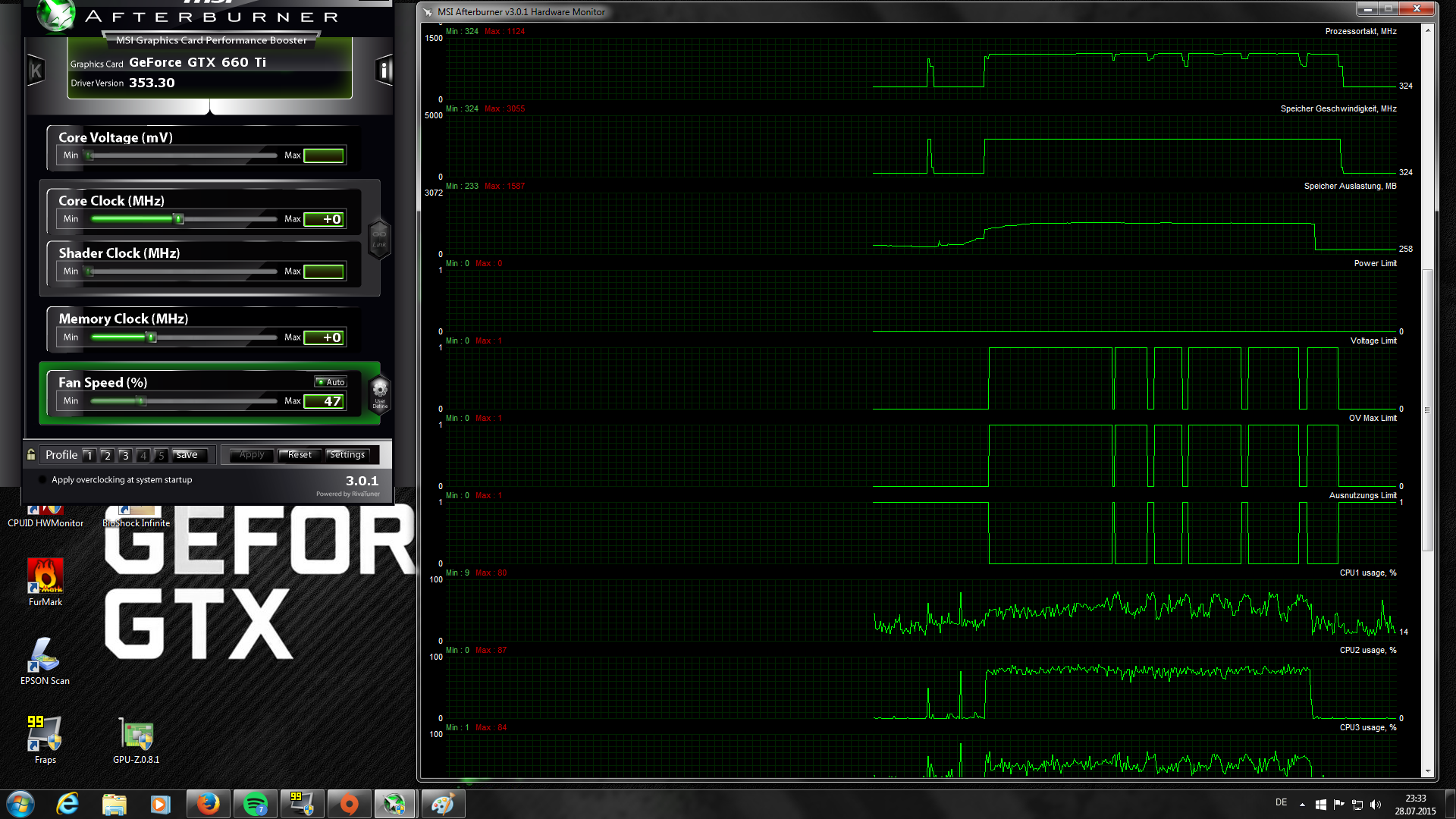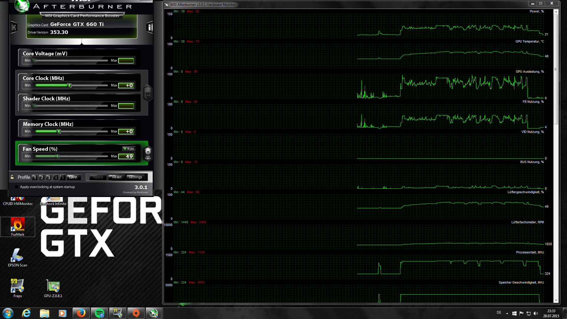 Was mir selber auffällt, die Graka Lüfter regeln schneller und vor allem öfter hoch als sonst. Sind die 70°C in manchen Abschnitten zu hoch? (Siehe screen). Ansonsten ist der PC eigentlich ausreichend gekühlt, 2 Front Lüfter, ein Heck Lüfter und die Karte selbst (Gainward GTX 660Ti mit dem Phantom Design
