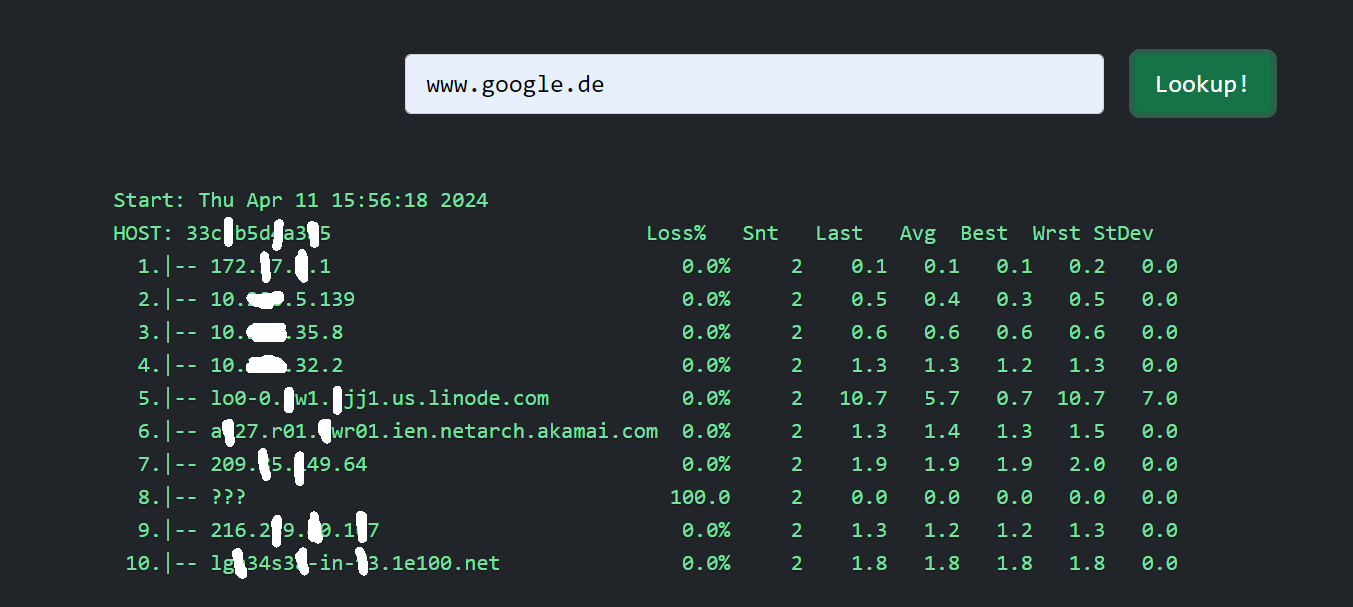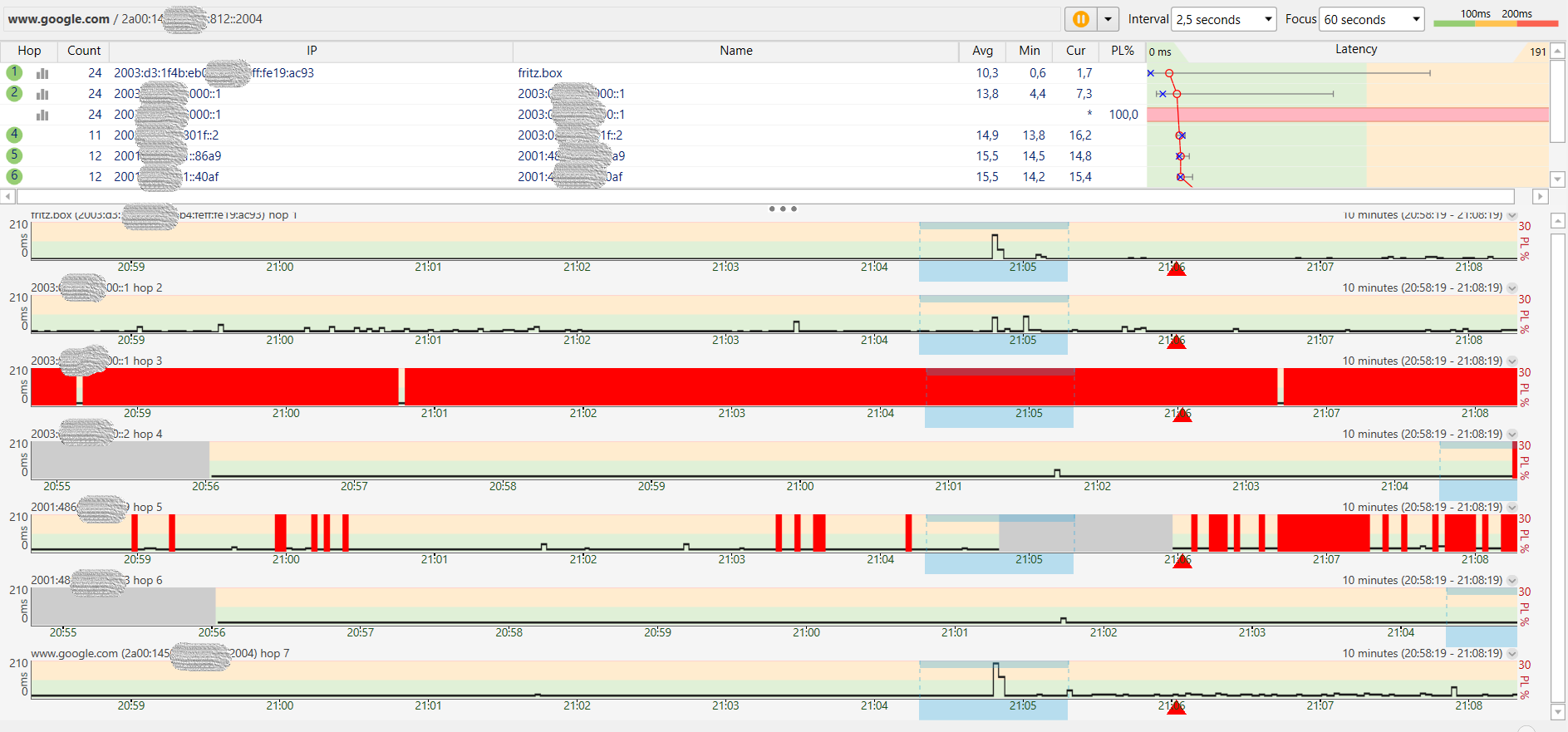 Und dann kann man schauen, wo es die Paketverluste gibt.